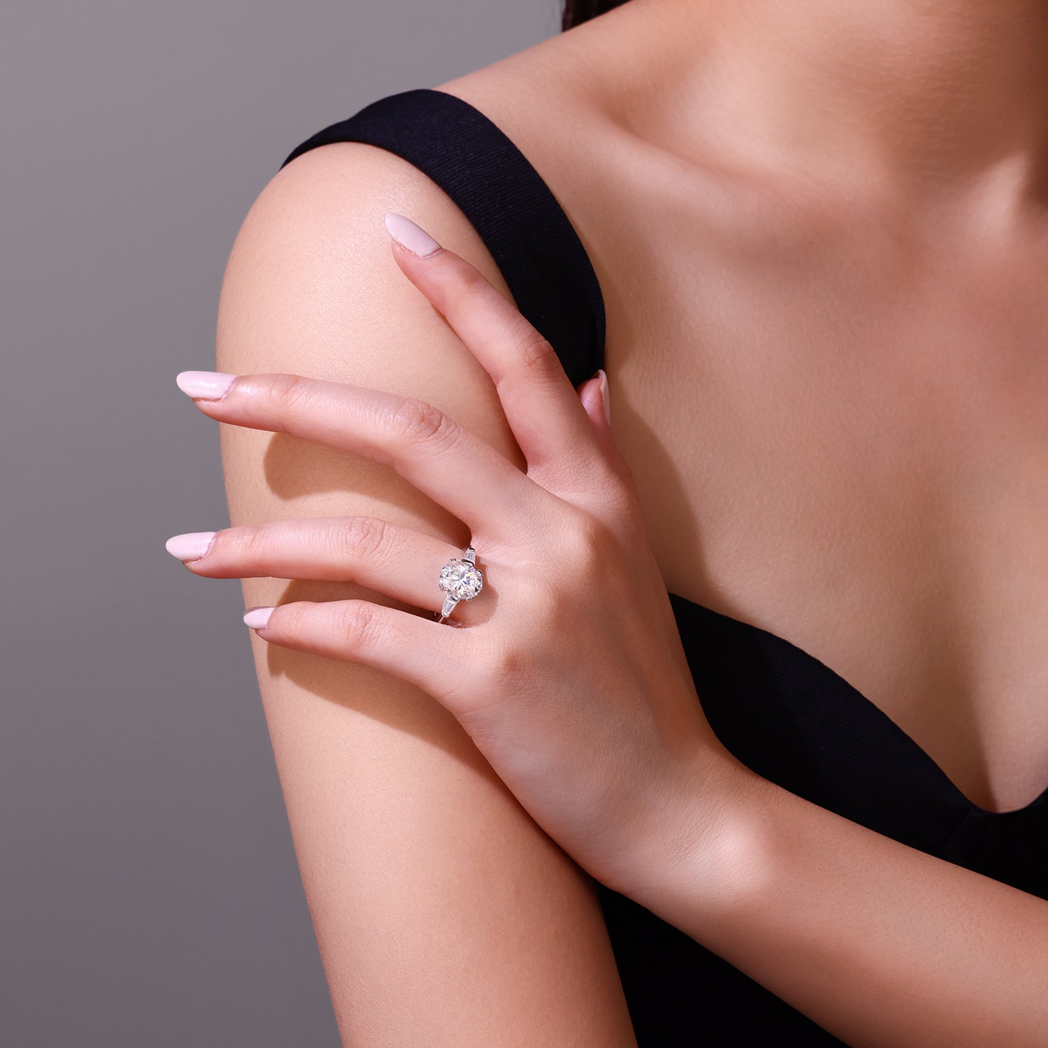 3.0 Carat Oval Shaped Moissanite S925 Silver Plated Ring