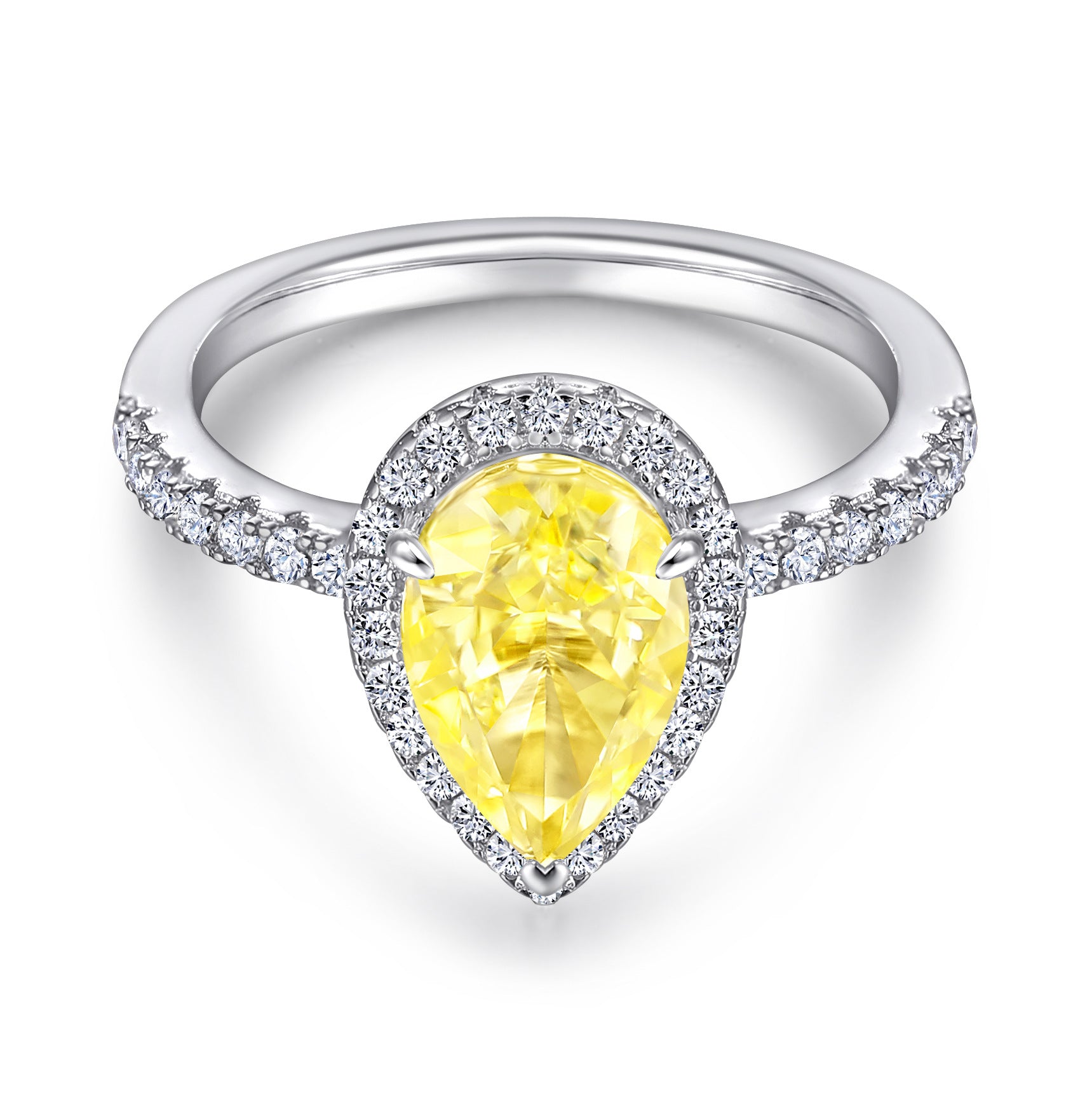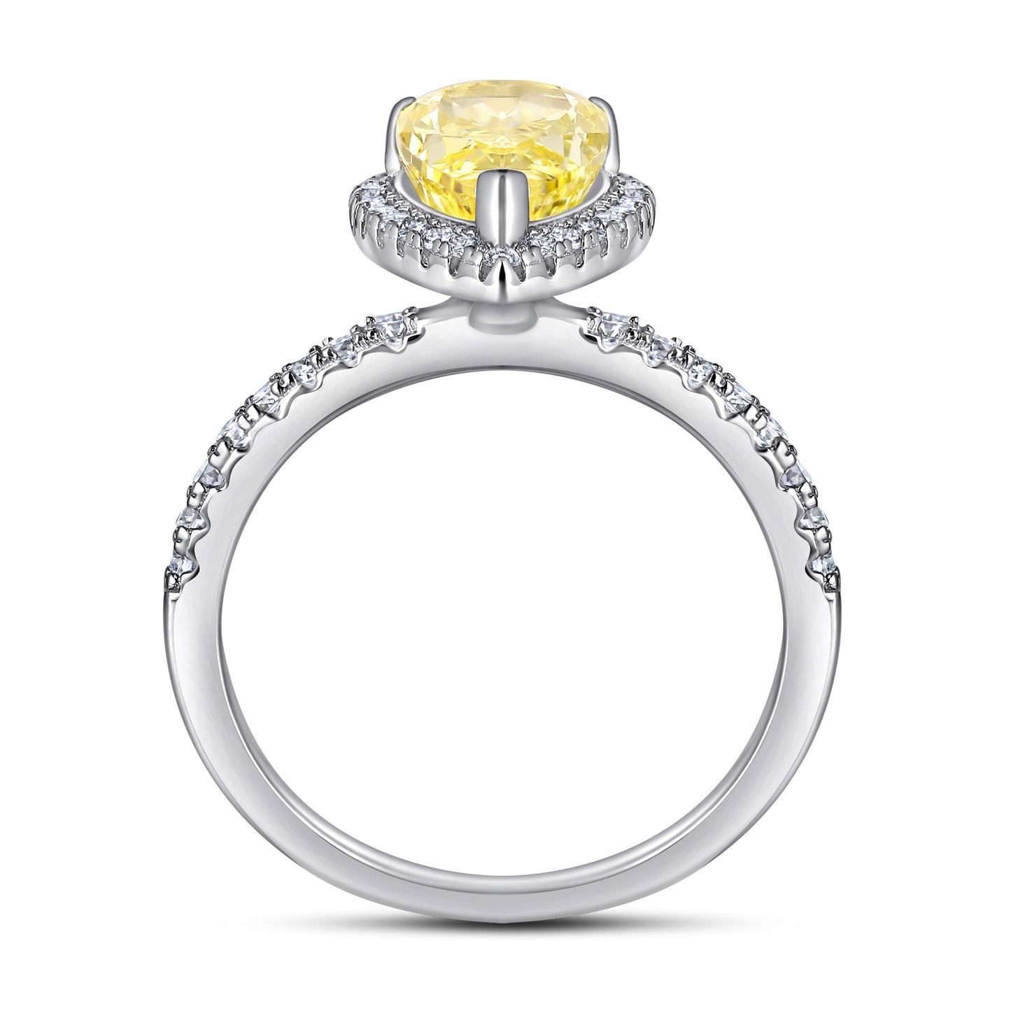This beautiful Silver Ring for Women is sure to make a statement with its 3.0CT Pear Drop yellow Zircon with Soleste Halo. Intricately crafted, the ring arm is delicately decorated with small zircons for added sparkle and glamour. Wear it for any special occasion and dazzle everyone with its charm.