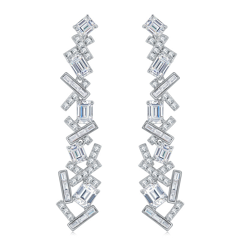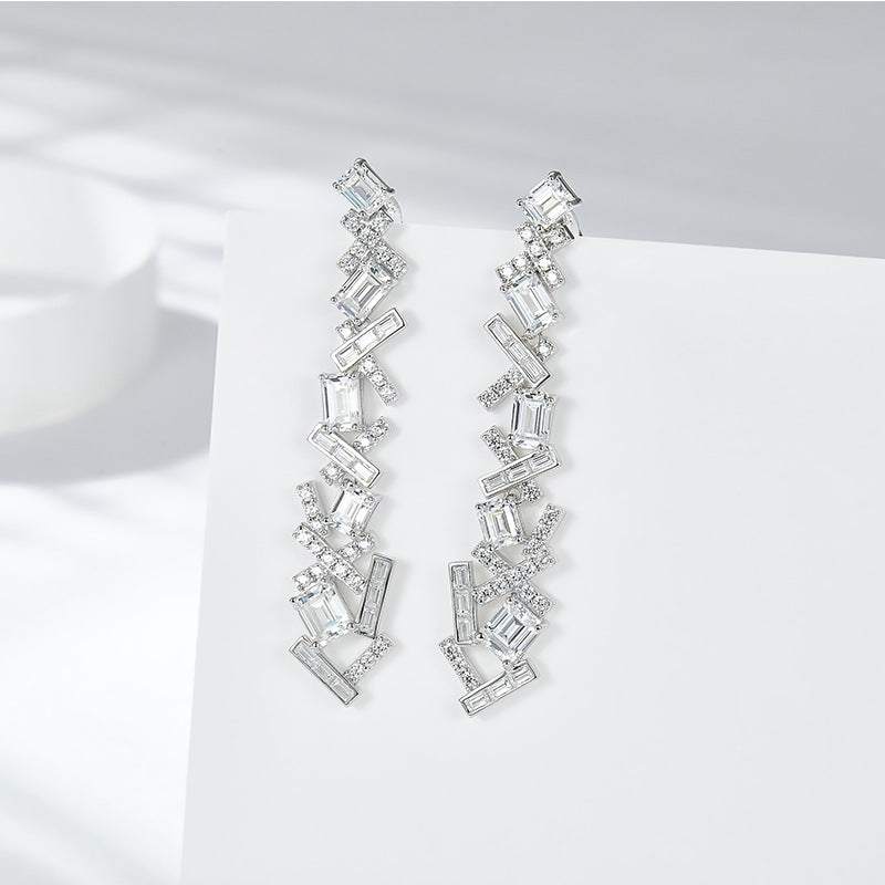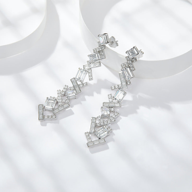 5A White Zircon Irregular Splicing Silver Drop Earrings for Women