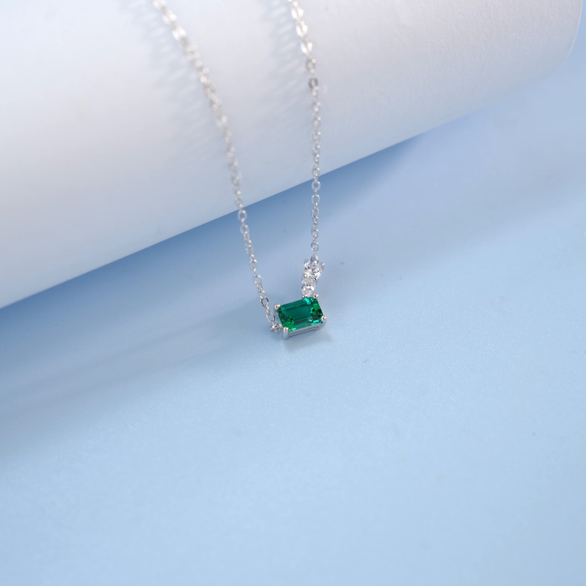 Planderful Lab Grown Emerald Cut Gemstone Pendant Necklace S925 Silver Plated Gift For Her