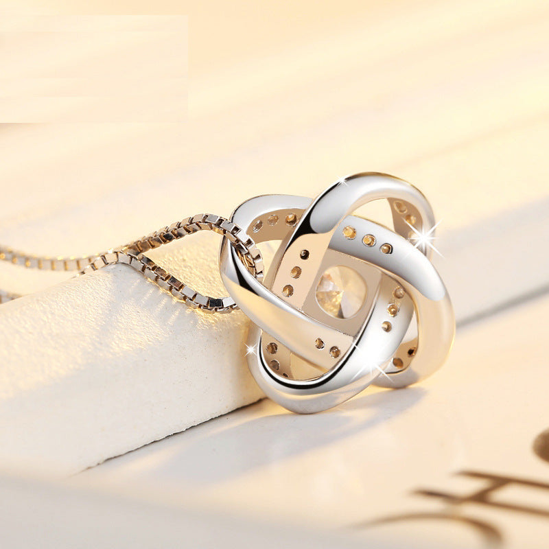 (Pendant Only) Lucky Clover with Round Zircon Silver Pendant for Women