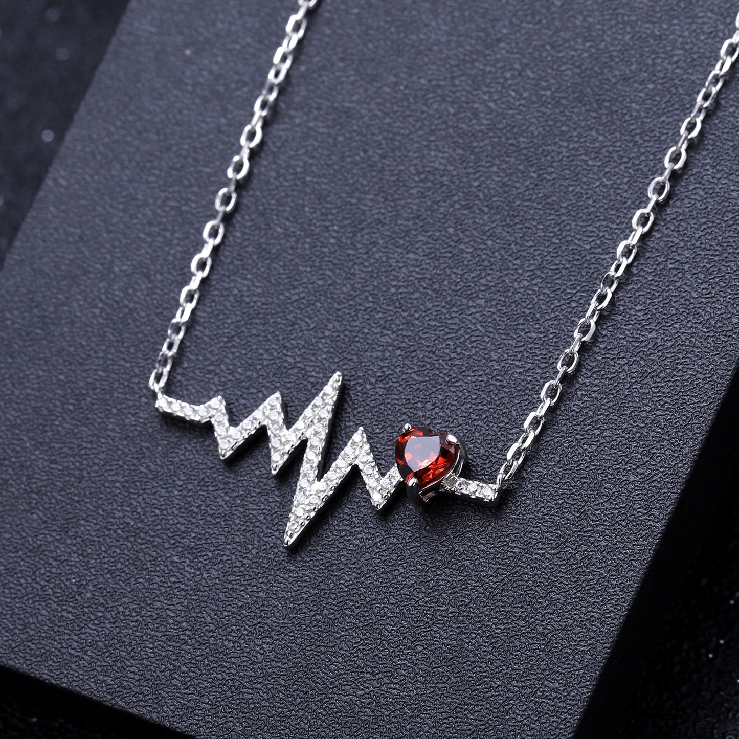 Fashion Versatile Style Inlaid Natural Colourful Gemstone Heartbeat Miracle Pendant Silver Necklace for Women