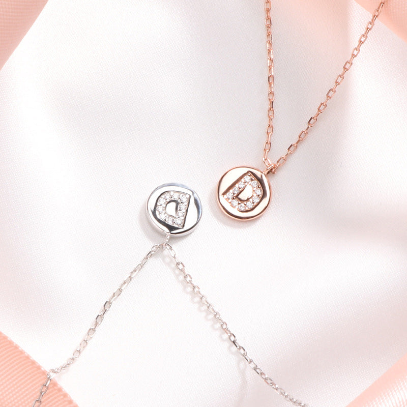 This stunning silver necklace featuring a circular medallion pendant with a beautiful zircon "D" letter. Crafted from sterling silver creating a luxurious and durable piece, this sparkling accessory is perfect for adding a touch of glamor to your look.