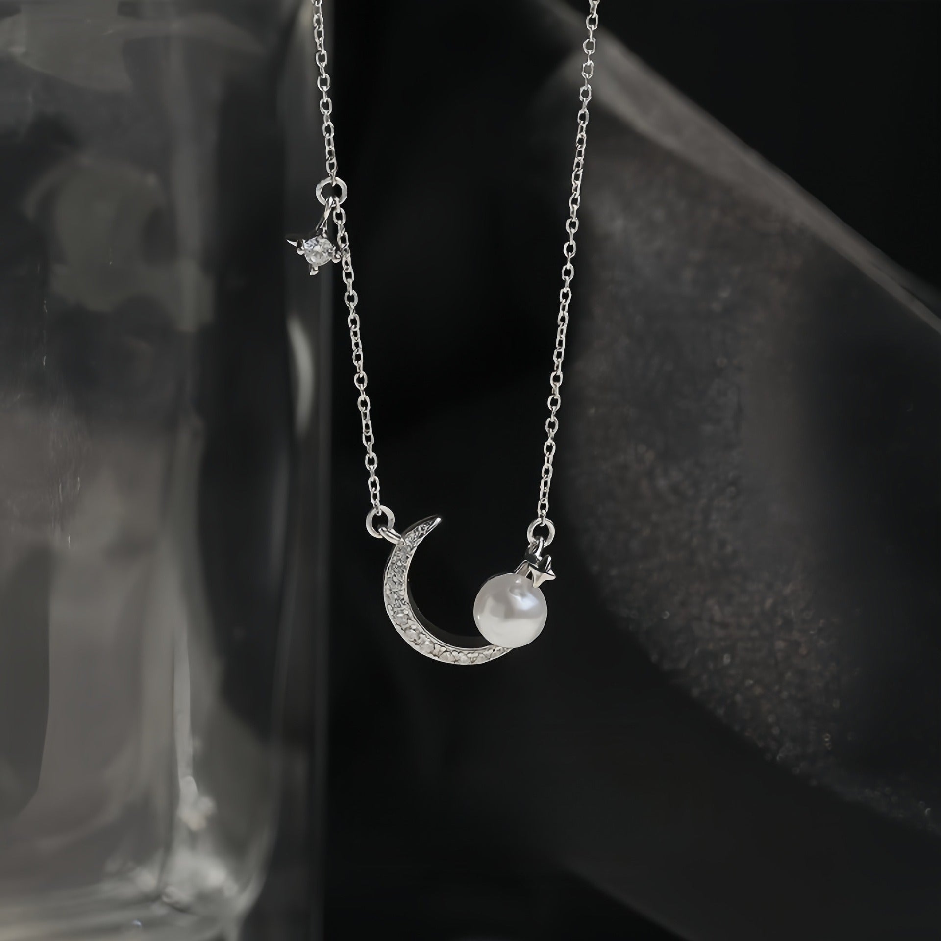 Planderful 925 Sterling Silver Pearl Moon Necklace For Women Collarbone Chain Elegant Luxury Pendant