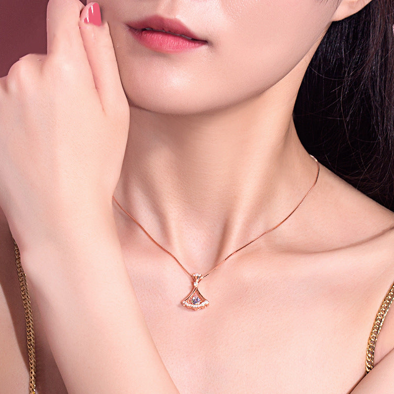Small Skirt with Zircon Pendant Silver Necklace for Women