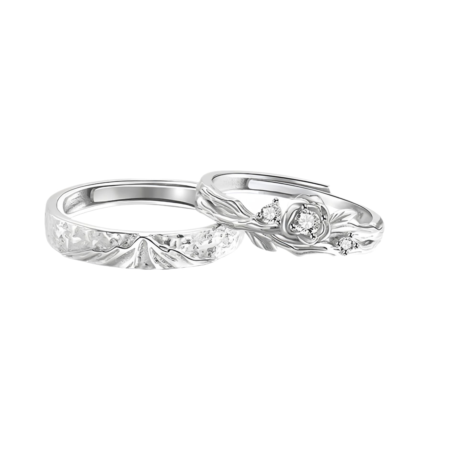 Experience a timeless symbol of connection with this 925 sterling silver snow mountain rose couple ring set from Planderful's Everyday Genie collection. Designed as a matching pair, it’s a thoughtful gift for your girlfriend for Christmas or a birthday, pairing refined style with meaningful symbolism.