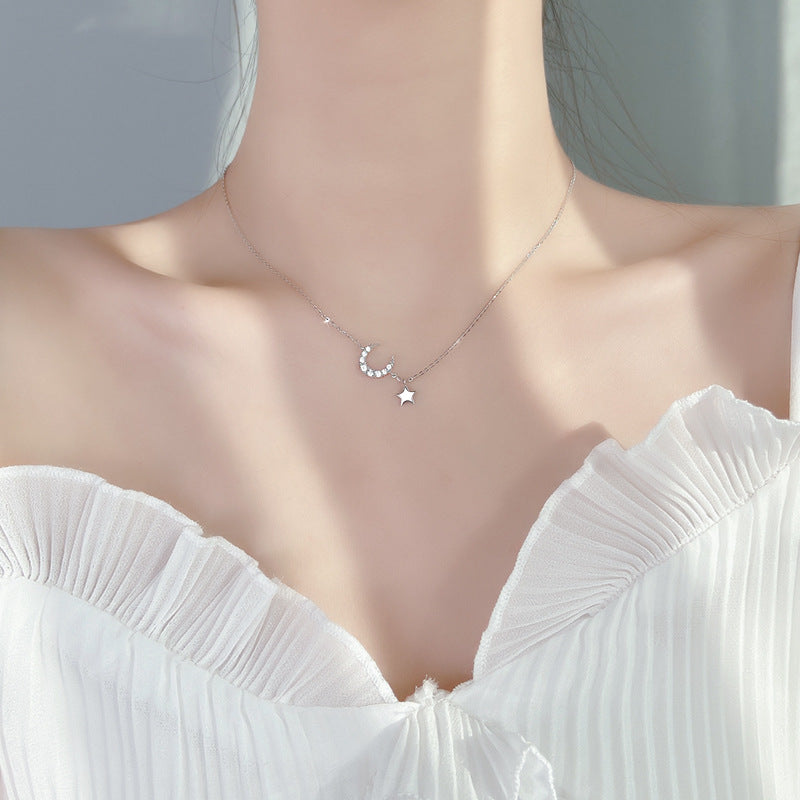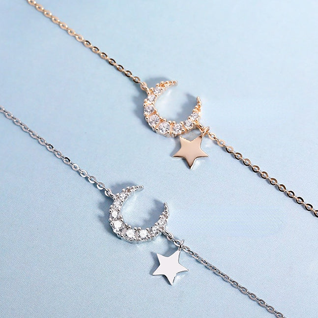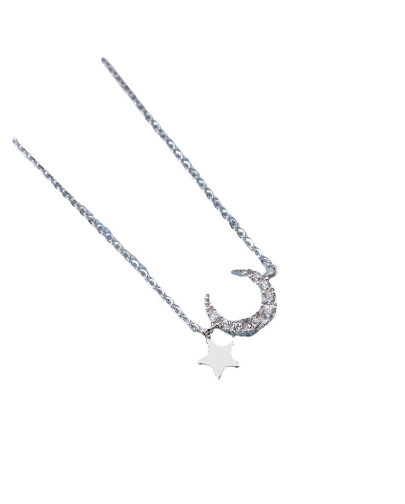 Stay shinning with this Zircon Moon necklace for Women, featuring a Zircon Moon pendant decorated with a polished star. Crafted with sterling silver, this necklace will add a touch of elegance and sophistication to any outfit.