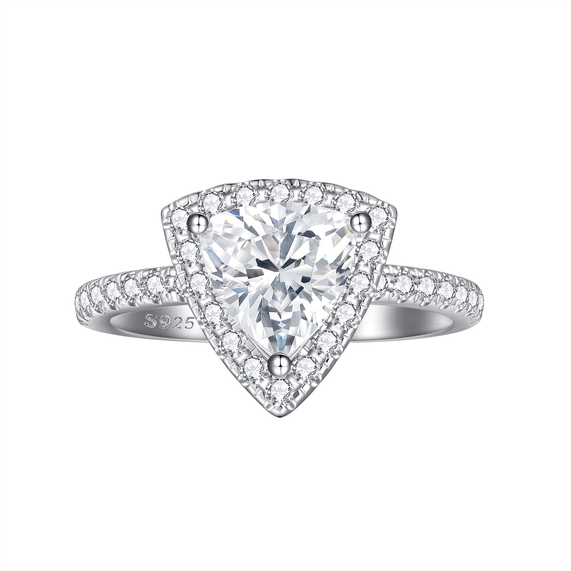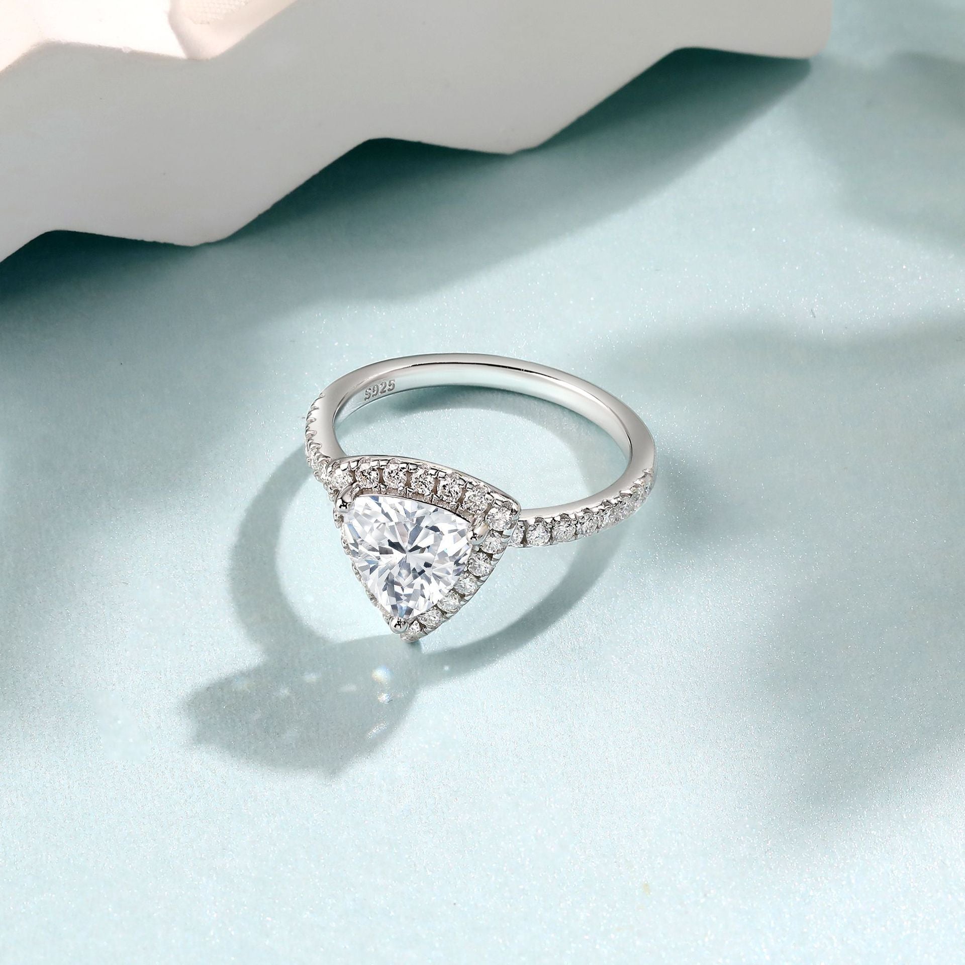 Planderful Sterling Silver 2 Carat Triangle Zircon Ring For Women Elegant Niche Jewelry Gift
