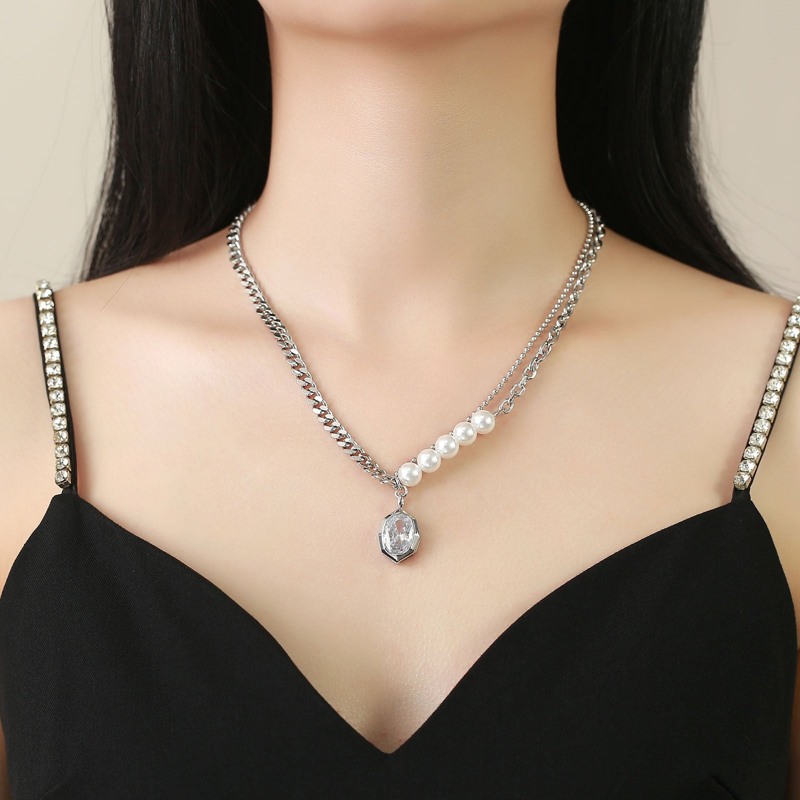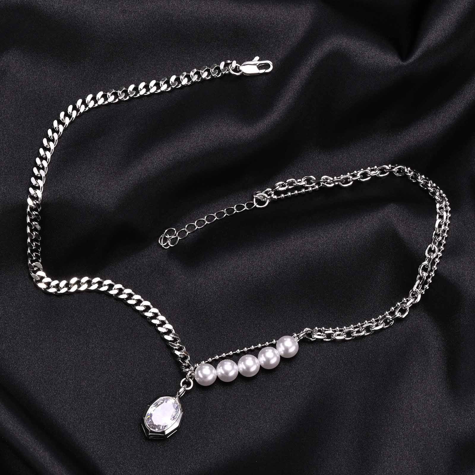 This versatile necklace is ideal for various settings, whether you're dressing up for a night out or adding flair to your everyday look. Pair it with a simple top or a stunning dress to make a lasting impression. The AB chain ins style personality fashion imitation pearl zircon geometric necklace female, irregular, copper material is a must-have addition to your jewelry collection.