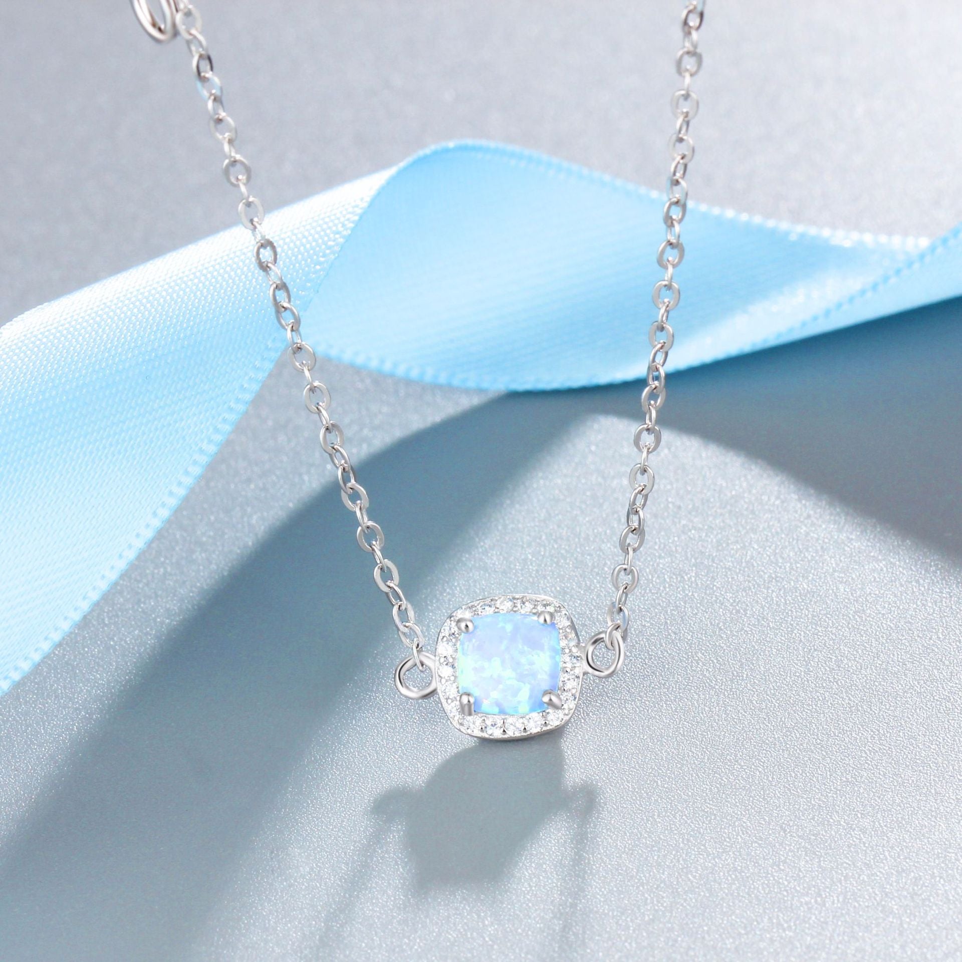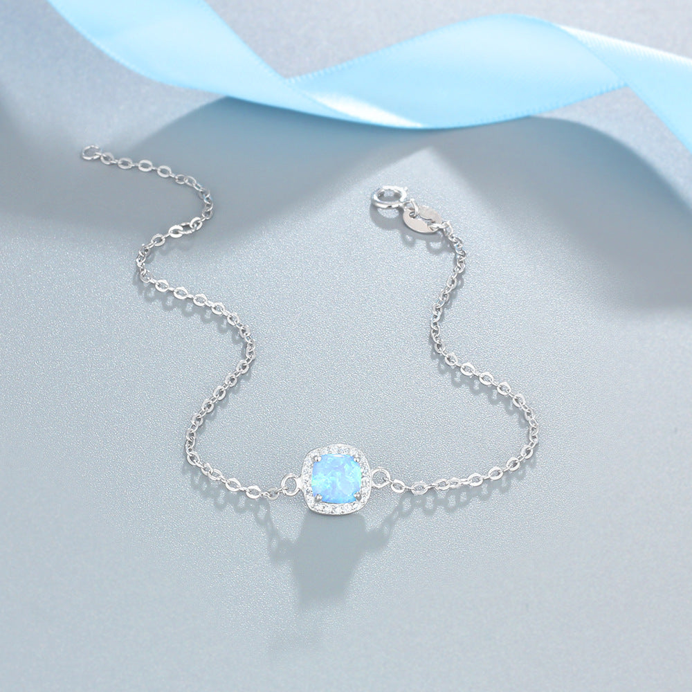 Square Blue Opal Zircon Soleste Halo Sterling Silver Bracelet