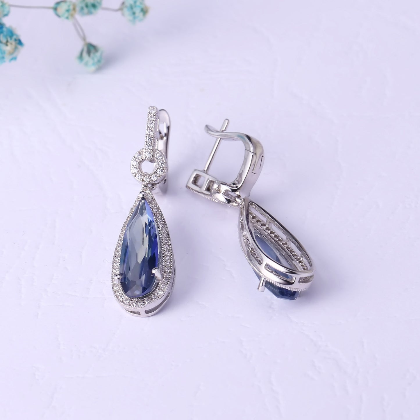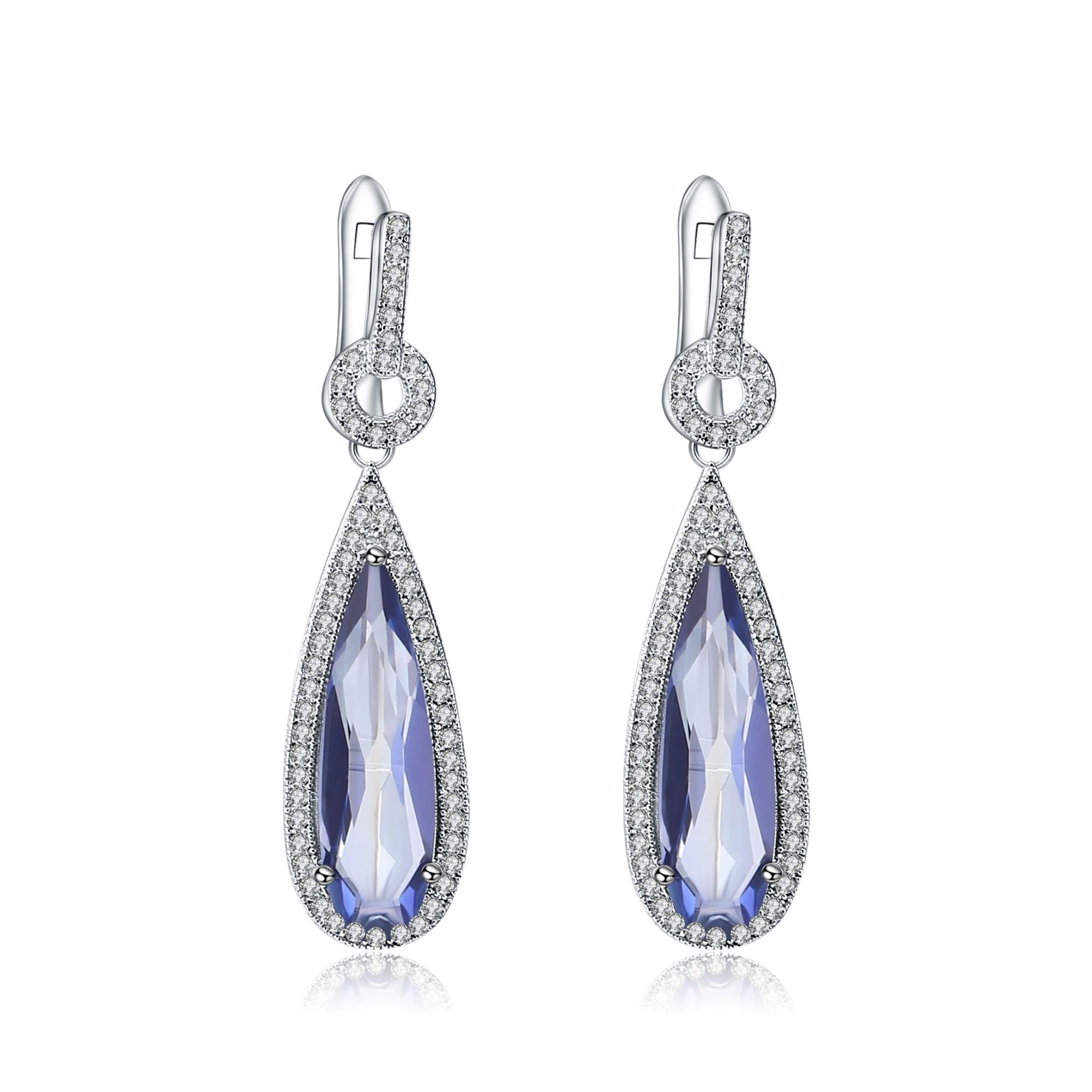 This Silver Drop Earrings for Women are the perfect addition to any ensemble. Crafted with a gleaming, sterling silver setting, they delicately display a single, sparkling Blue Tear-drop Crystal with Soleste Halo pendant that will catch the light from any angle. Add a touch of timeless elegance and refinement to your look with this beautiful earrings.