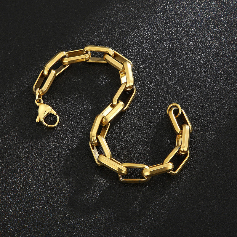 Personalized Titanium Steel Men's Hip-Hop Bracelet with Square Links