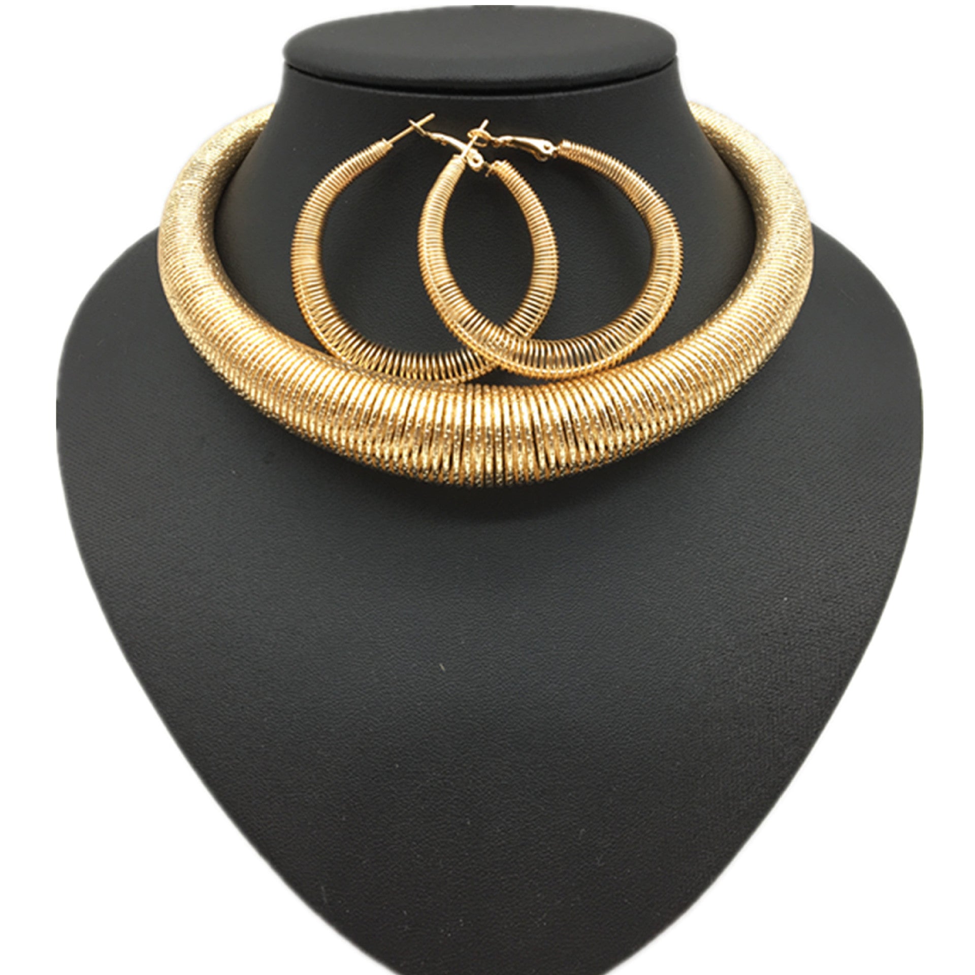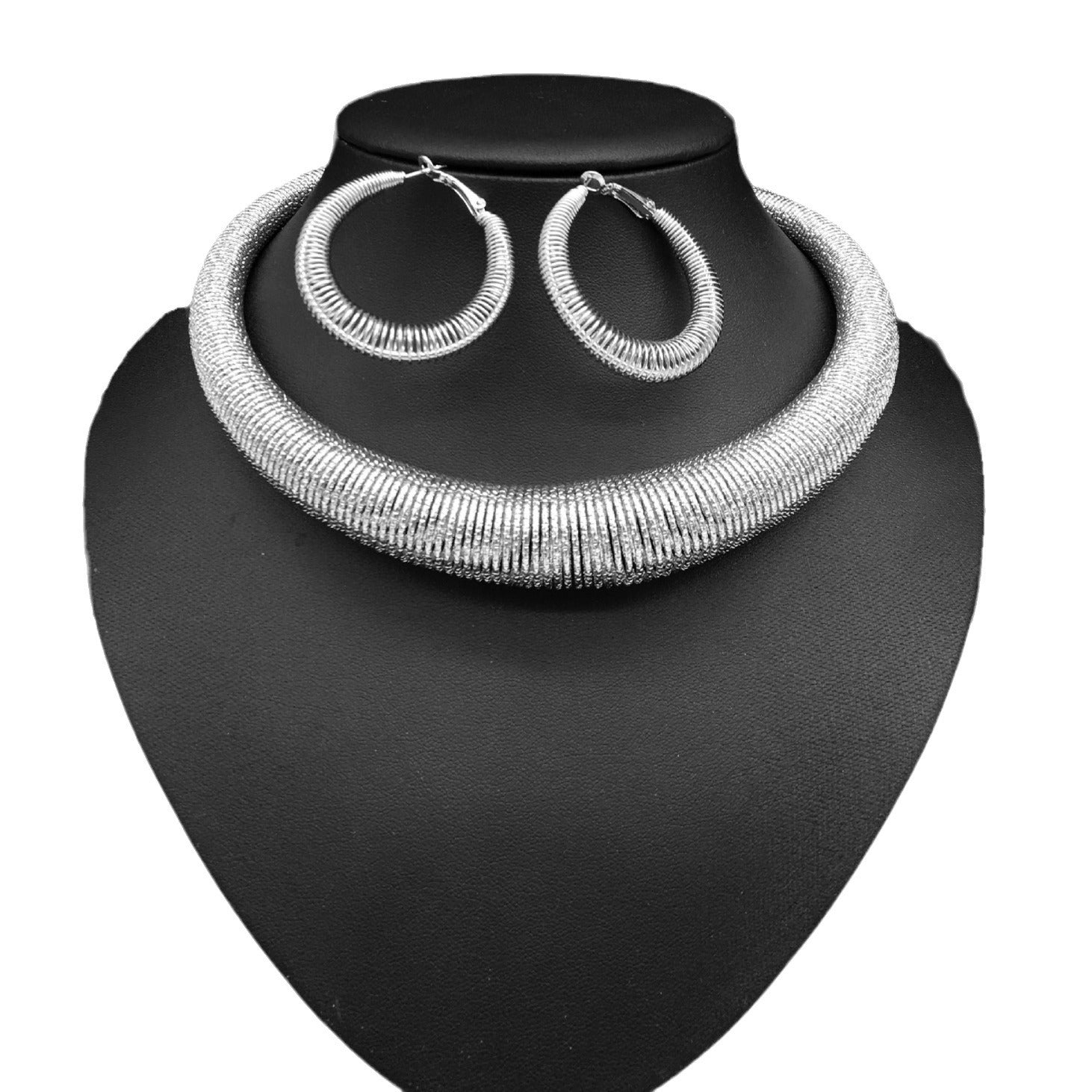 Indulge in the elegant craftsmanship of this European and American metal spring necklace and earrings set. The unique design is perfect for women looking to add a touch of sophistication to their outfits. Crafted from high-quality alloy, this set from the Savanna Rhythms collection by Planderful is a must-have for any jewelry lover. Whether you're dressing up for a special occasion or simply want to elevate your everyday look, this collar AliExpress necklace set is sure to turn heads.