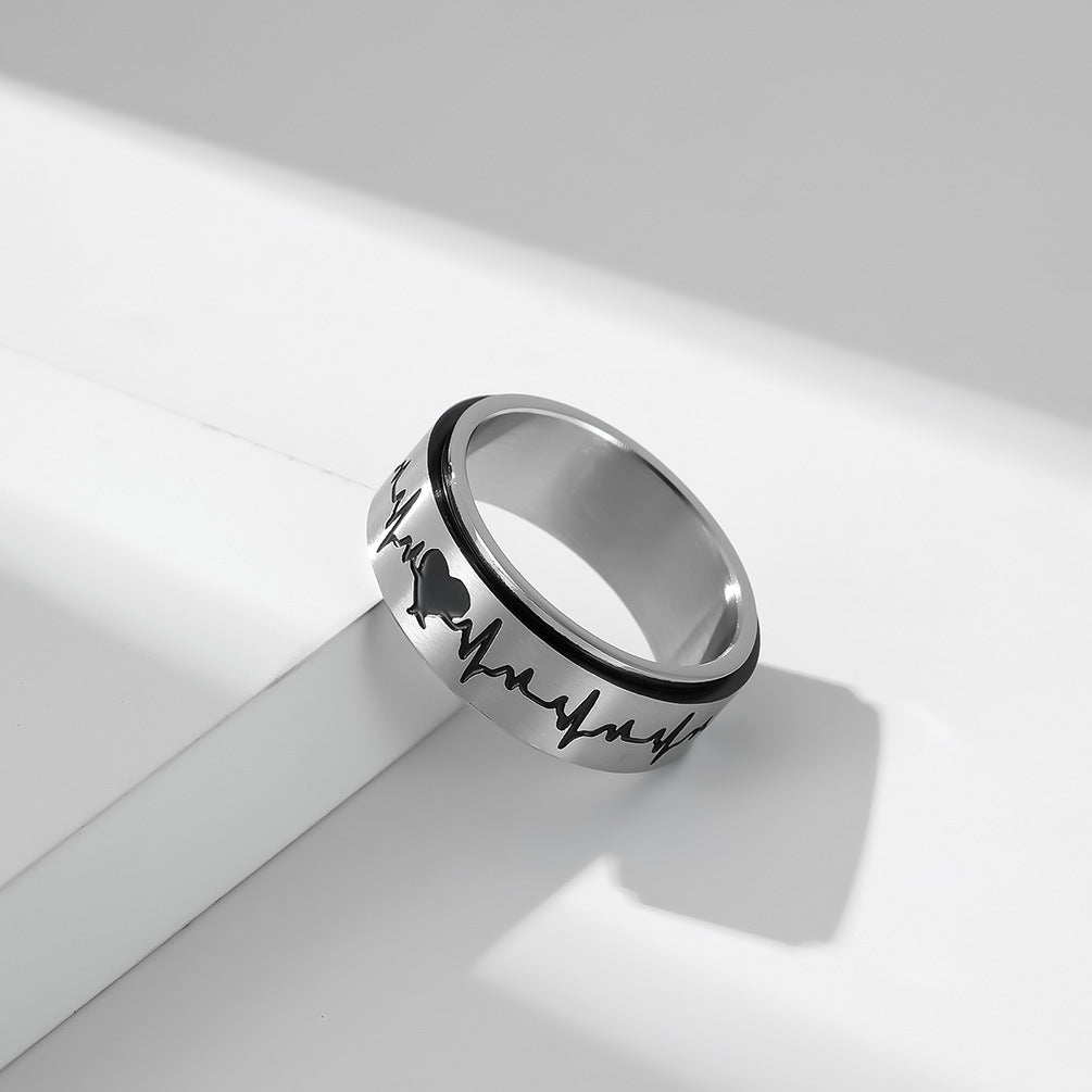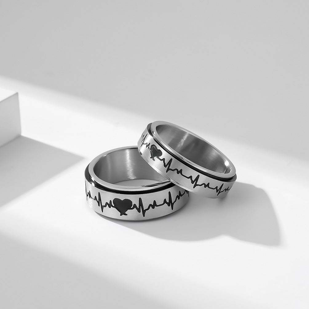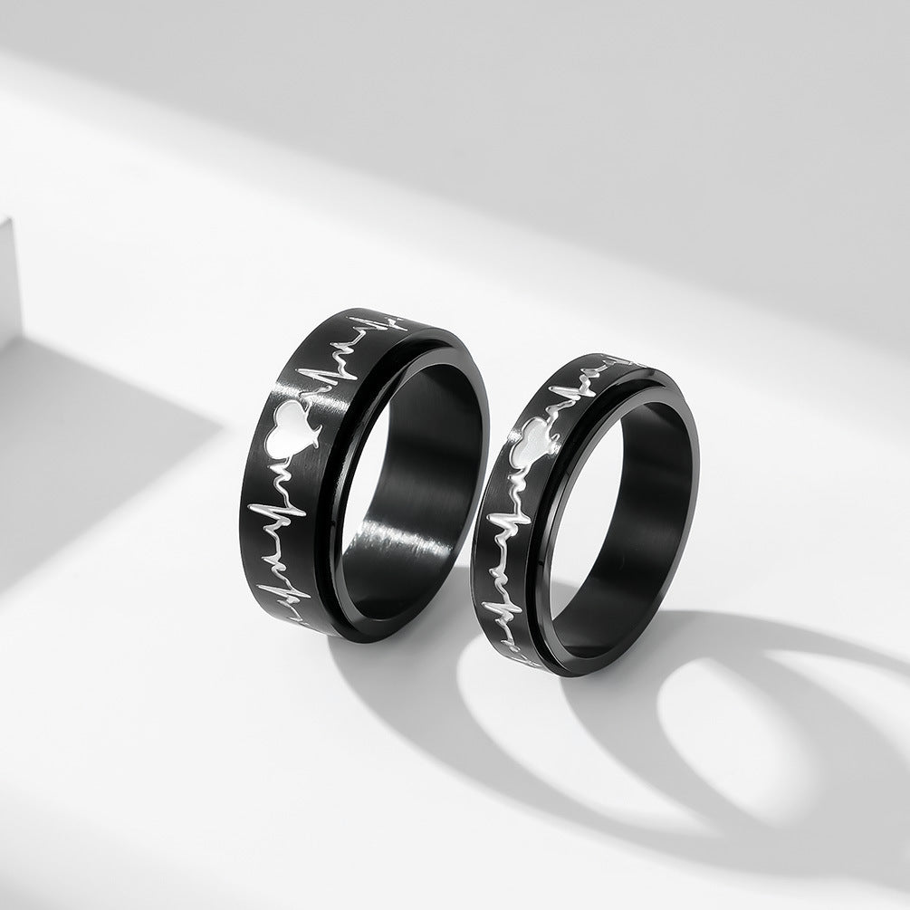 Crafted from high-quality titanium steel, this unique couple ring features a captivating electrocardiogram design that represents the heartbeat of your relationship. Its rotating feature not only adds an element of fun but also serves as a decompression tool, helping you manage stress throughout your day.