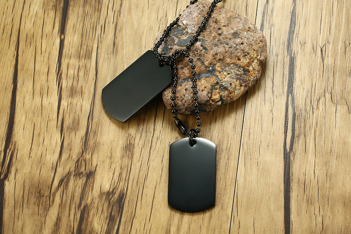 Discover the elegance of the Amazon wish foreign trade jewelry, stainless steel double tag pendant, men's necklace for men. This stunning necklace seamlessly combines style and durability, making it the perfect accessory for any man looking to elevate his wardrobe. Crafted from high-quality titanium steel, this pendant is not only robust but also lightweight, ensuring comfort for all-day wear.