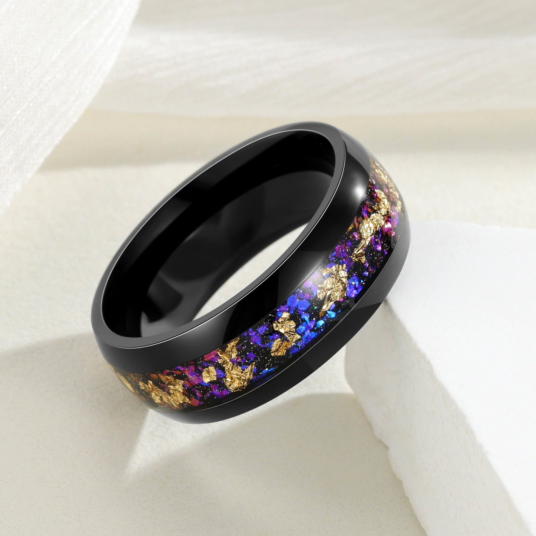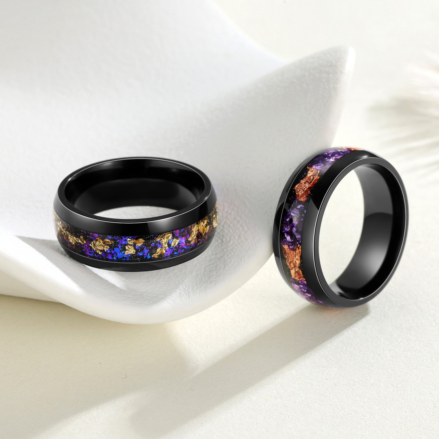 Elevate his everyday style with the Planderful Everyday Genie men's ring—a bold fusion of black finish, amethyst inlays, and gold foil accents. Crafted from sturdy steel for lasting durability, this boutique-design ring delivers a sleek, non-fading look that pairs perfectly with casual or formal outfits.
