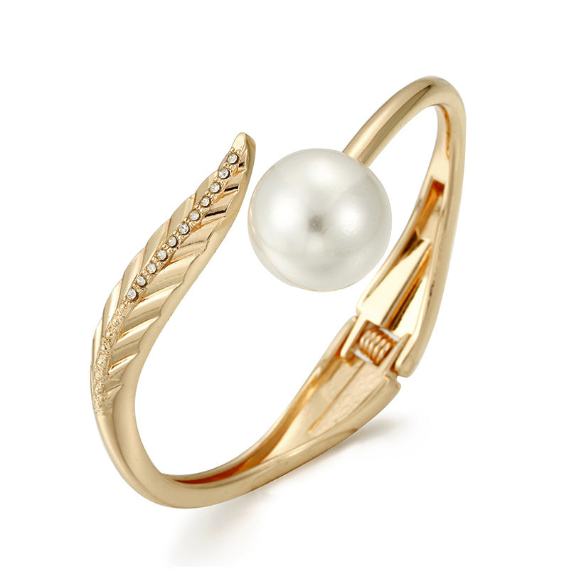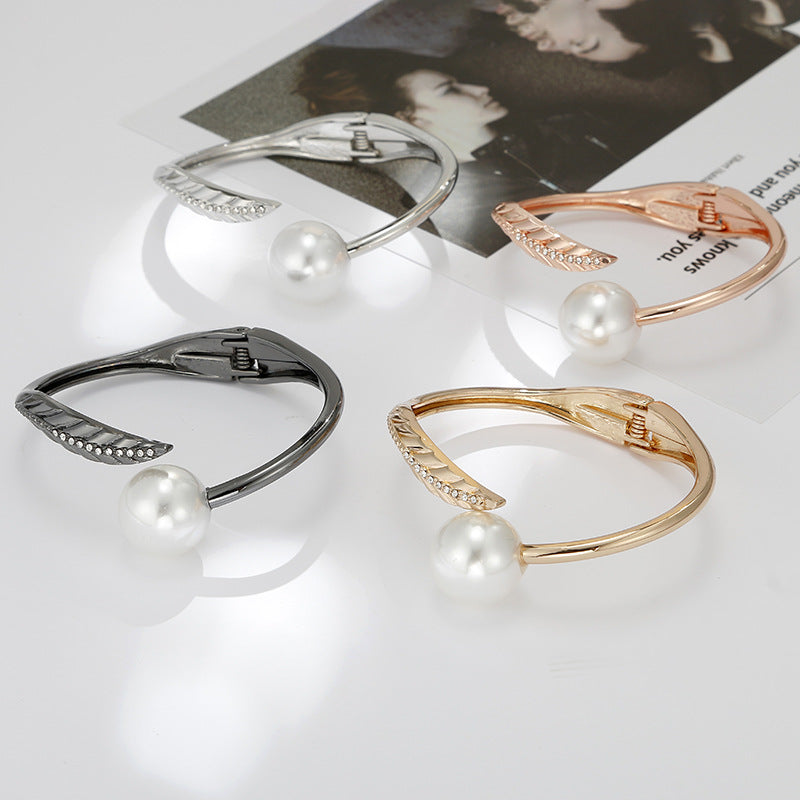 Rose Gold Asymmetric Pearl Bracelet in Titanium Steel for Women
