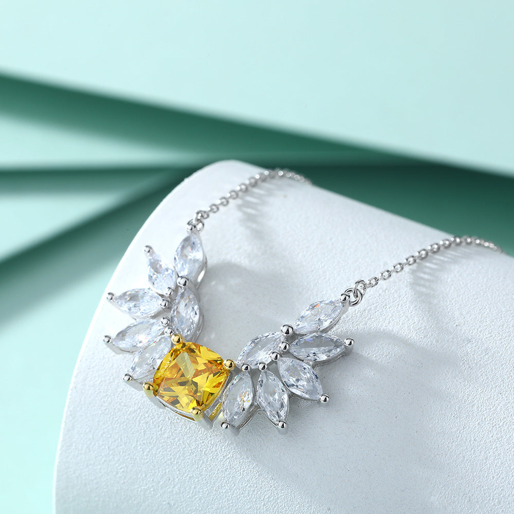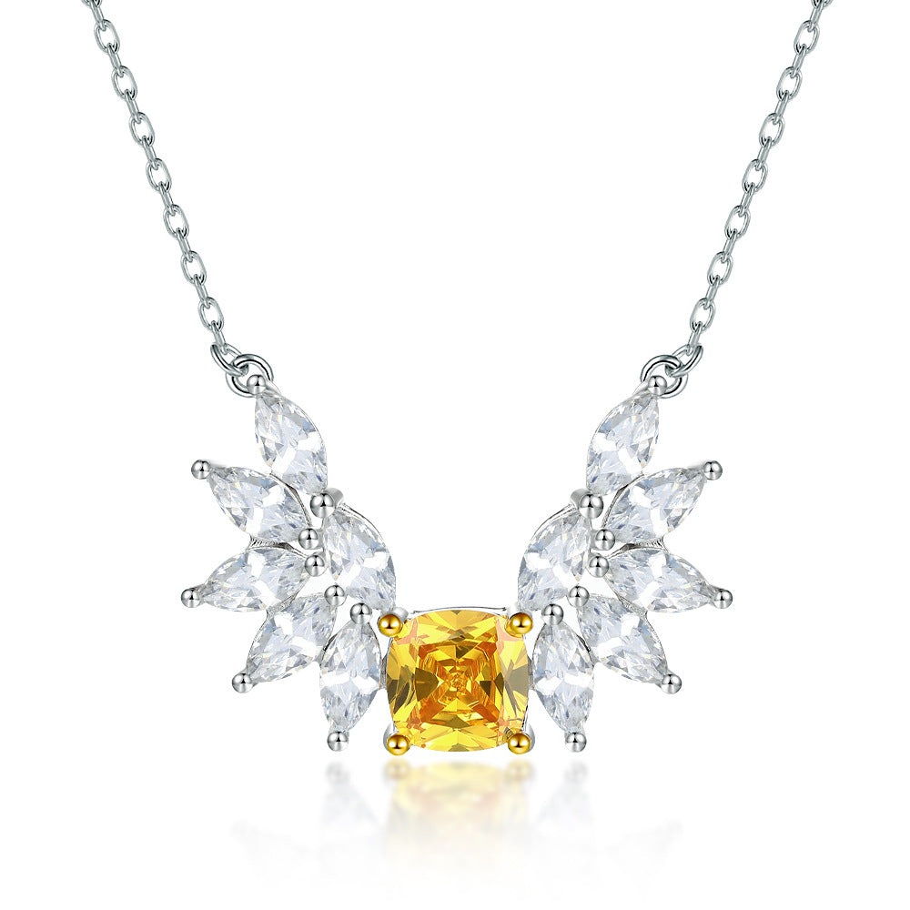 Marquise Wing Yellow Zircon Pendant Silver Necklace for Women