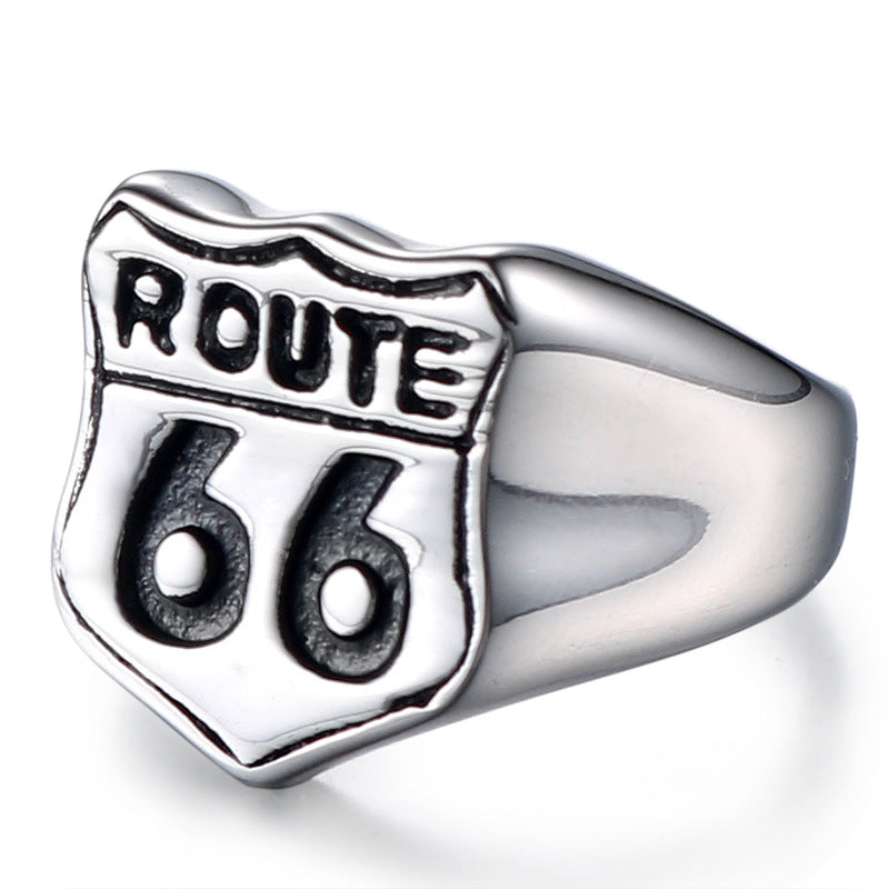 Aohongyang US Route 66 Titanium Steel Ring for Men - The Brave Pioneer Design