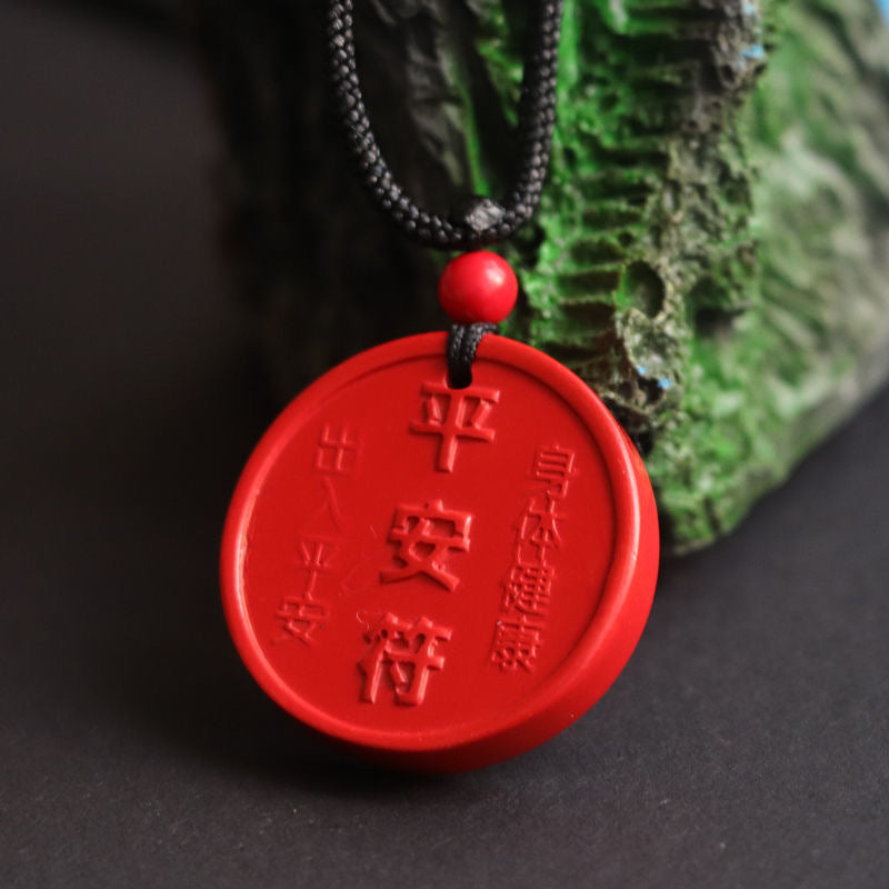 Red Cinnabar Sand Protective Talisman Pendant with Sterling Silver Craftsmanship