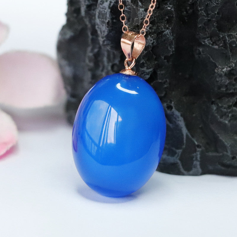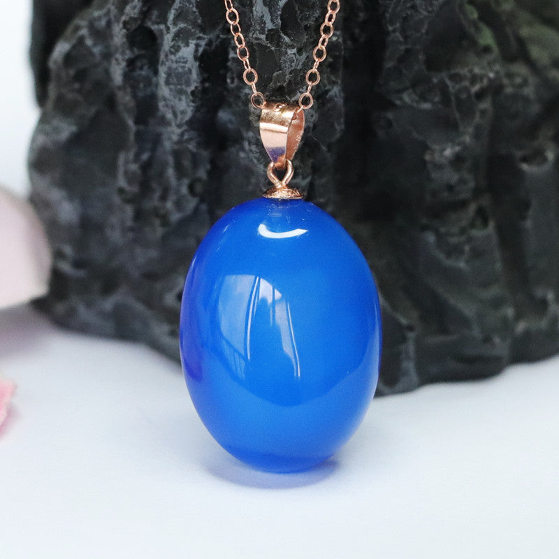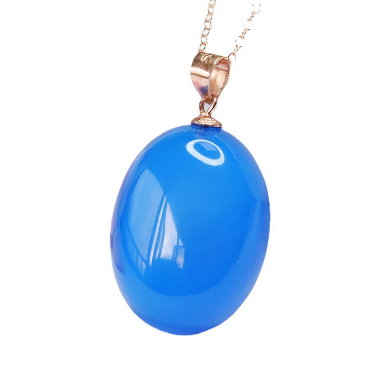 Rose Gold Necklace with Blue Chalcedony Pendant in S925 Silver Oval