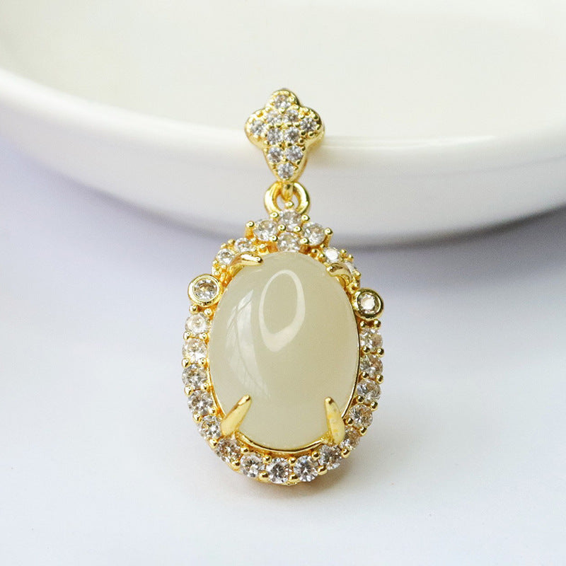 Pigeon Egg Natural Hetian Jade Zircon Pendant