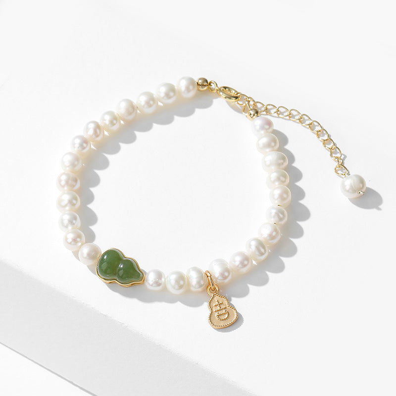 Enhance Your Style with Our Natural Freshwater Pearl and Hetian Jade Gourd Bracelet