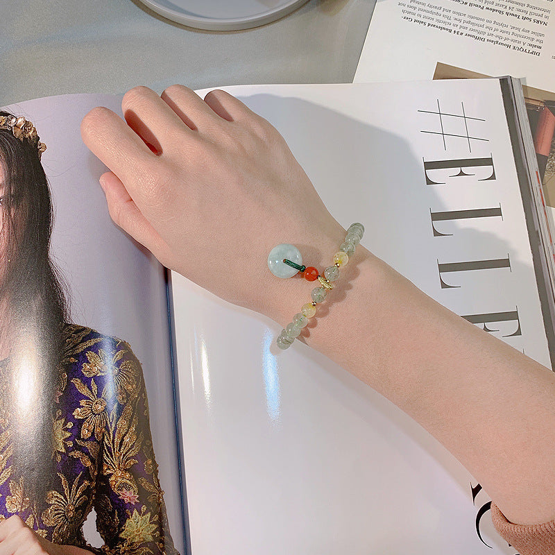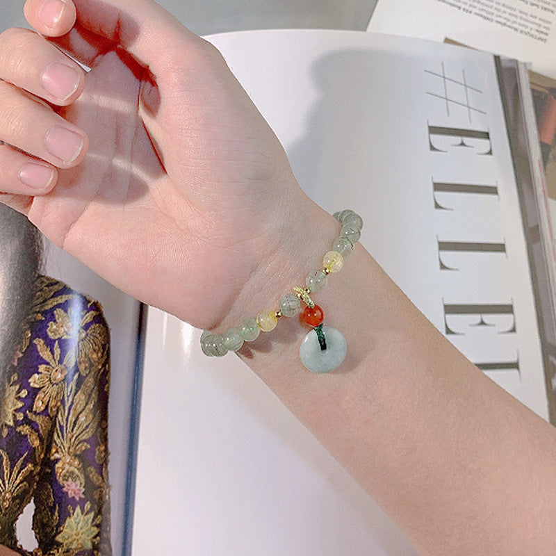 Rock Crystal Bracelet New Niche Green Hair Crystal Bracelet Woven Jade Buckle Pendant Jewelry