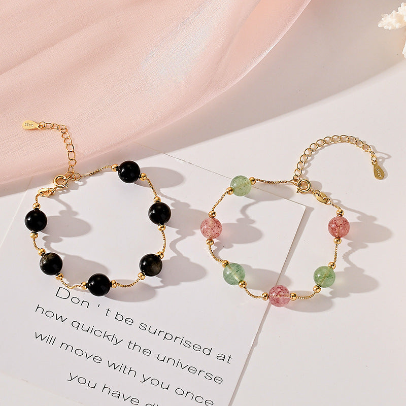 Elevate your fashion game with the Bado Crystal Bracelet. Crafted with striking red and green strawberry crystals, as well as the timeless elegance of obsidian, this bracelet is a must-have for women who want to exude both fashion and temperament.
