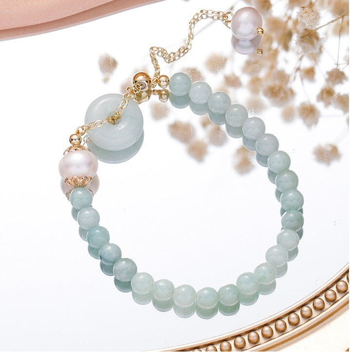 Elegant Sterling Silver Crystal Bracelet with Jade Safety Buckle