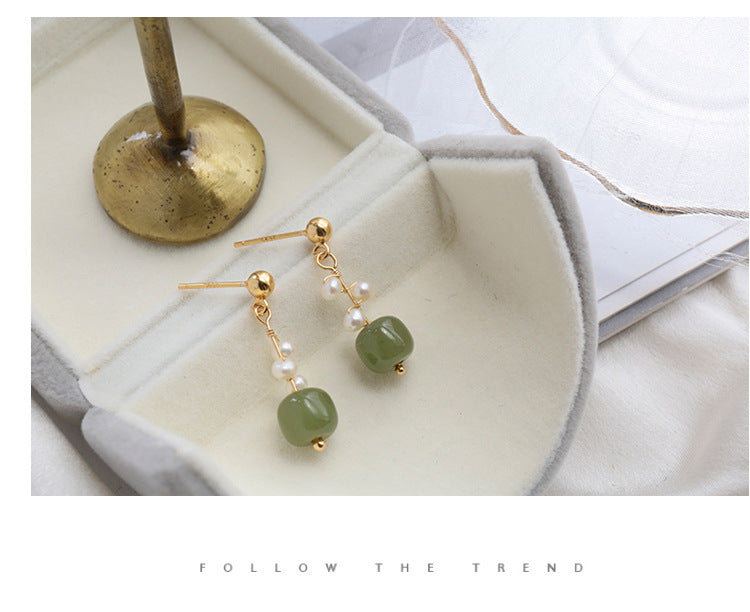 Natural Jade Earrings for Women's Korean Edition