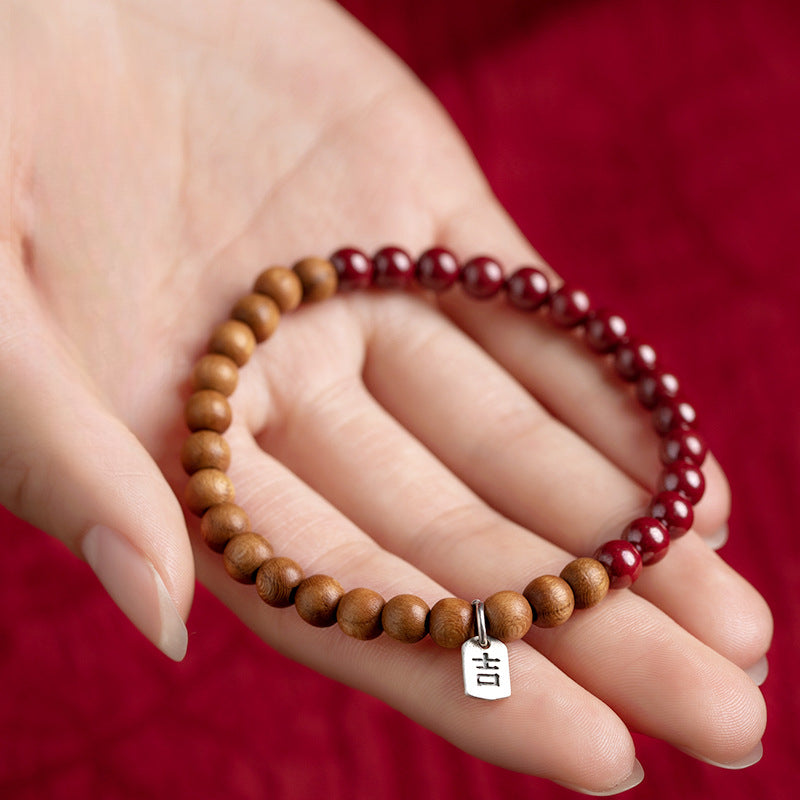 China-Chic Fortune's Favor Peach Wood Bracelet for Men and Women