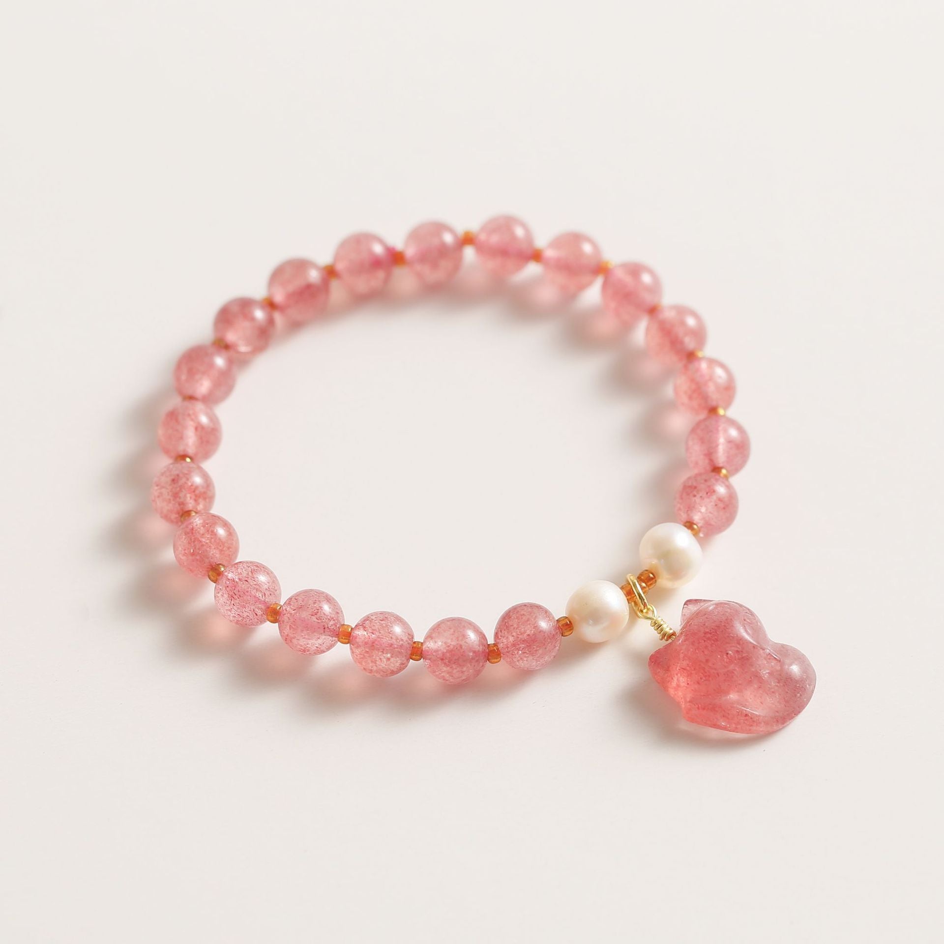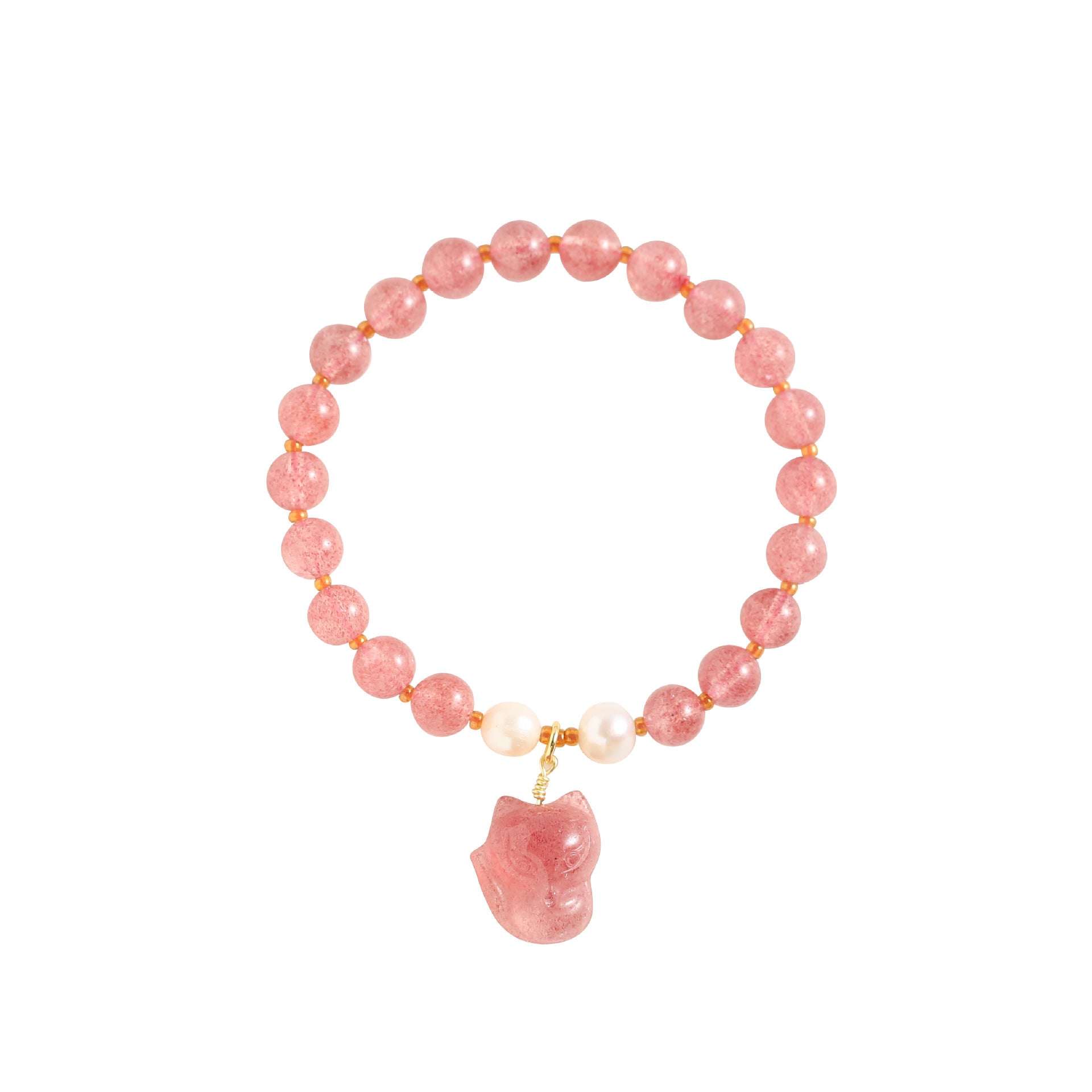 Fox Pendant Strawberry Crystal Bracelet with Pearl Boudoir Bracelet