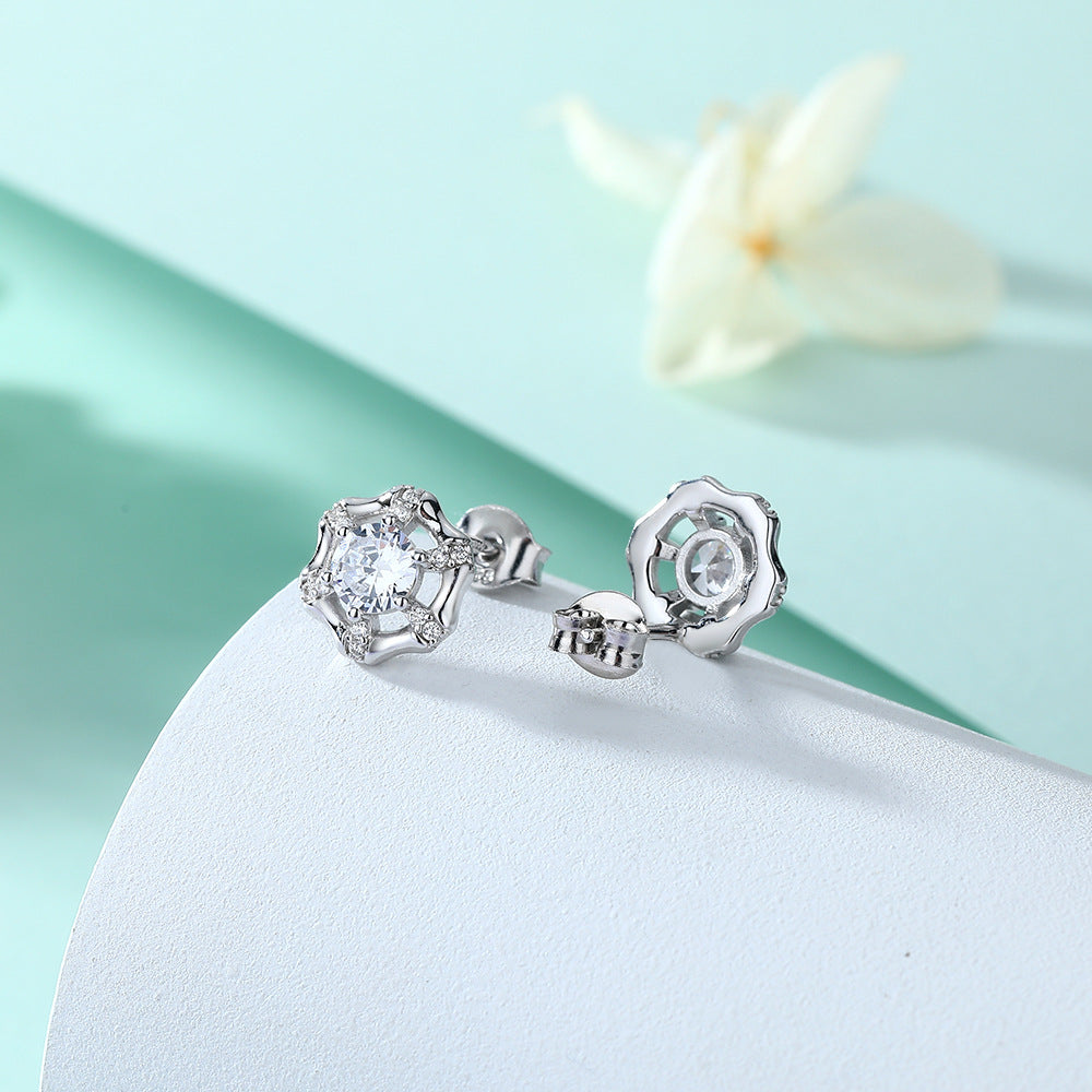 Round Zircon Bamboo Circle Silver Studs Earrings for Women