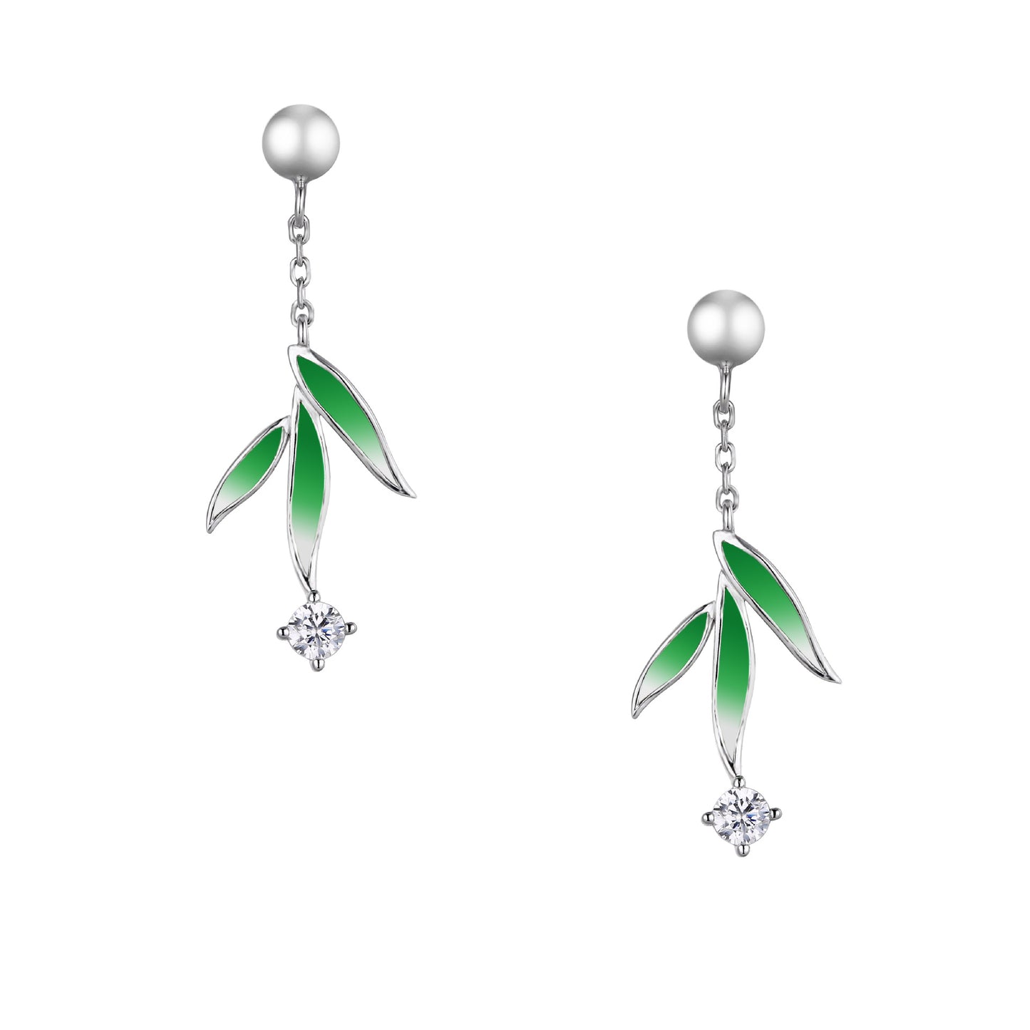 This stunning earrings feature a gradient bamboo leaf design with sparkly zircon and glossy pearl, Crafted with sterling silver, wear them to enhance any look and make a statement.