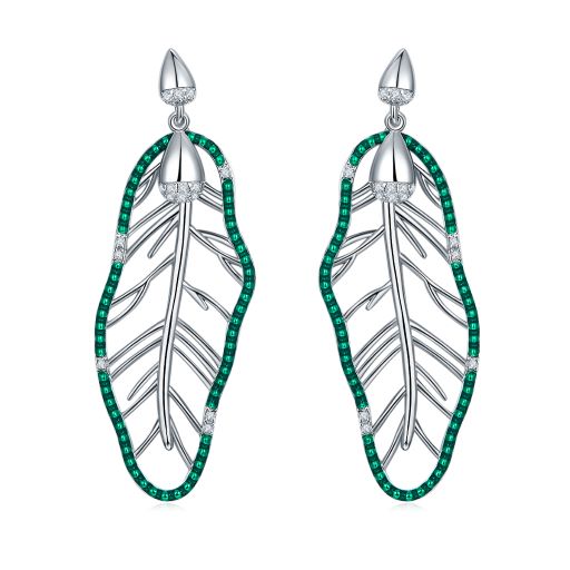 Hollow Banana Leaf Green Topaz Drop Earrings