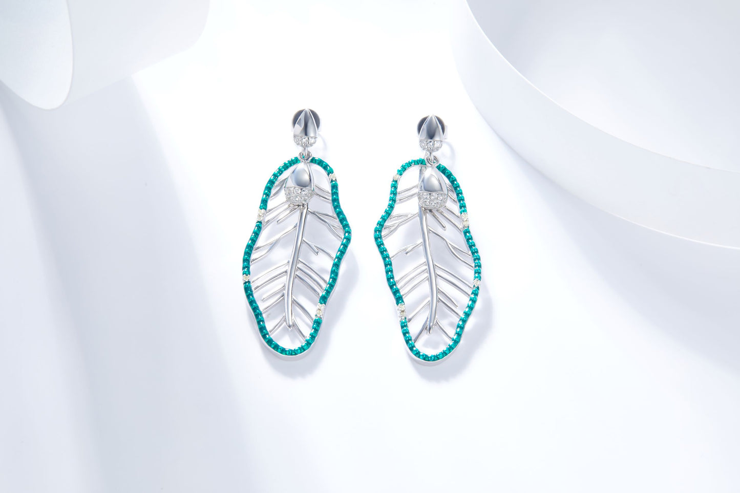 This earring is inspired by banana leaves, symbolizing tropical charm and natural beauty. The edges of the earrings are inlaid with blue-green topaz, shining with the light of the sea, adding a fresh and elegant look. The earrings are made of pure silver, with a delicate texture and durability without discoloration.