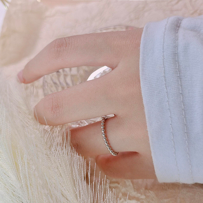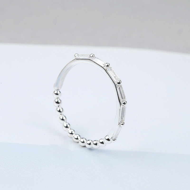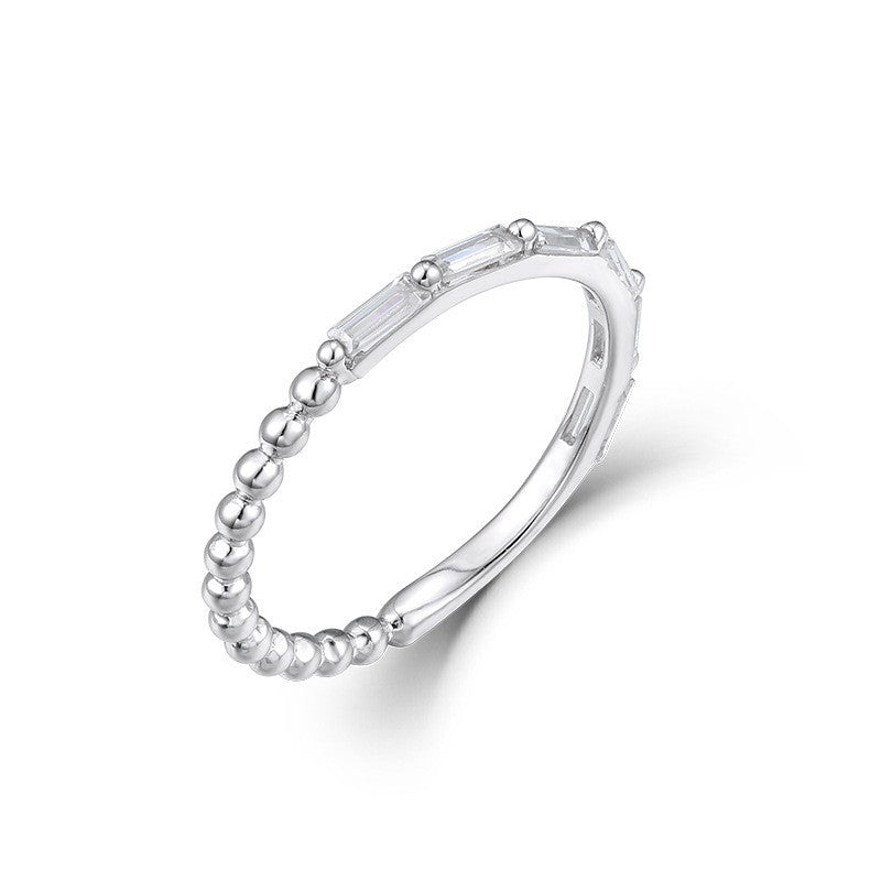 Half Circle Baguette Cut Zircon Beaded Silver Ring for Women