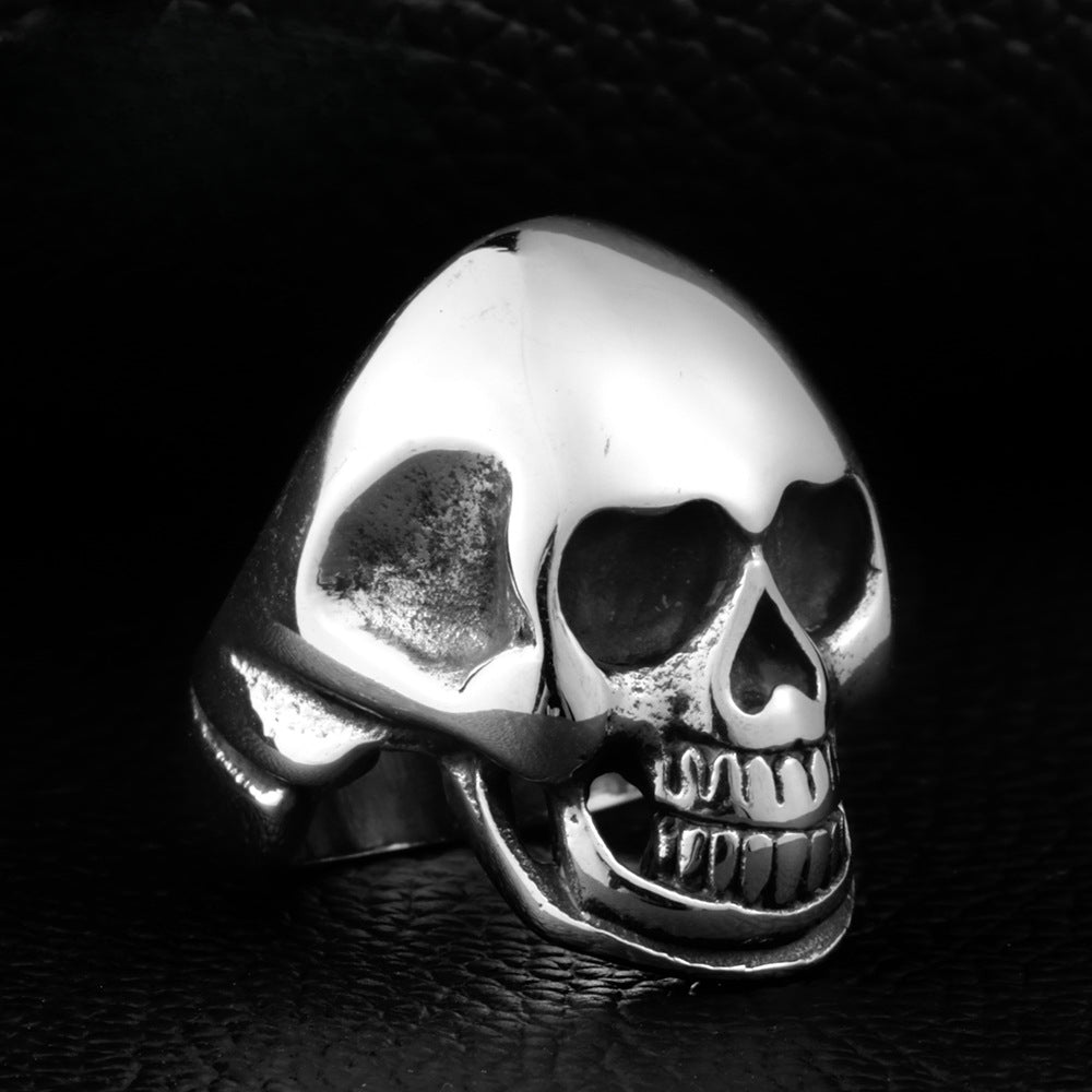 Punk-Inspired Titanium Steel Skull Ring for Men - Retro Cross-Border Jewelry