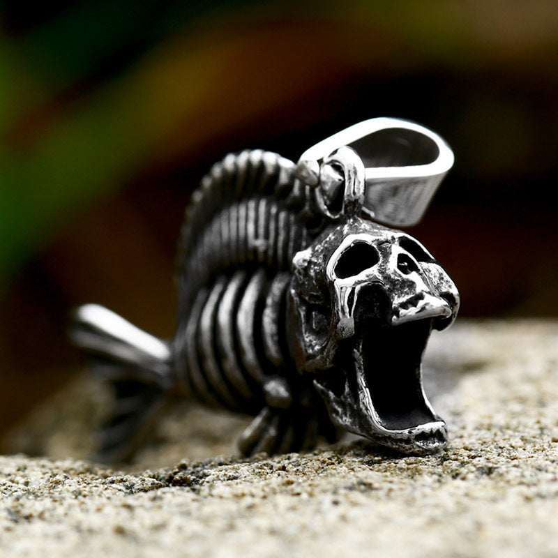Retro Titanium Steel Skull Pendant - Cross-Border Stainless Steel Fishbone Accessories for Men