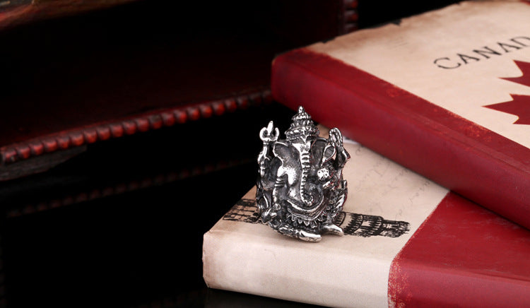 Personalized Titanium Steel Elephant Trunk God Ring for Men - Wholesale Ethnic Jewelry