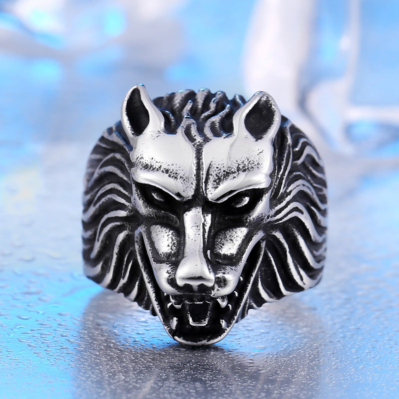 Retro Men's Titanium Steel Wolf Head Ring - European and American Style Wholesale