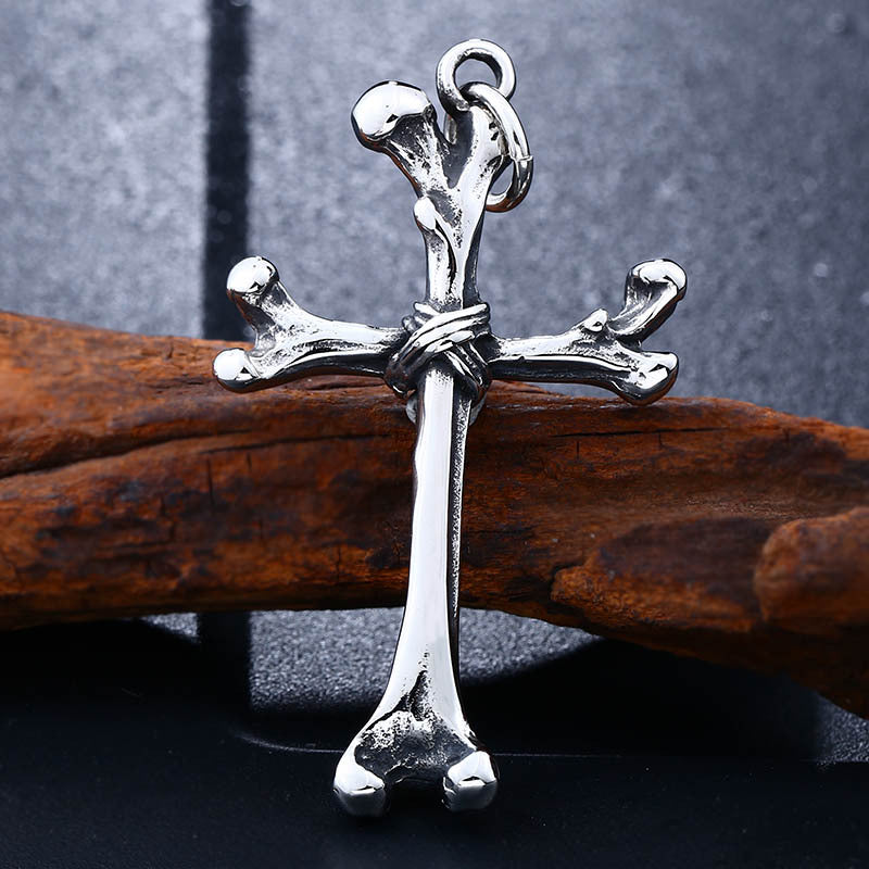 Discover the Edgy Elegance of Our Retro Titanium Steel Bone Cross Pendant