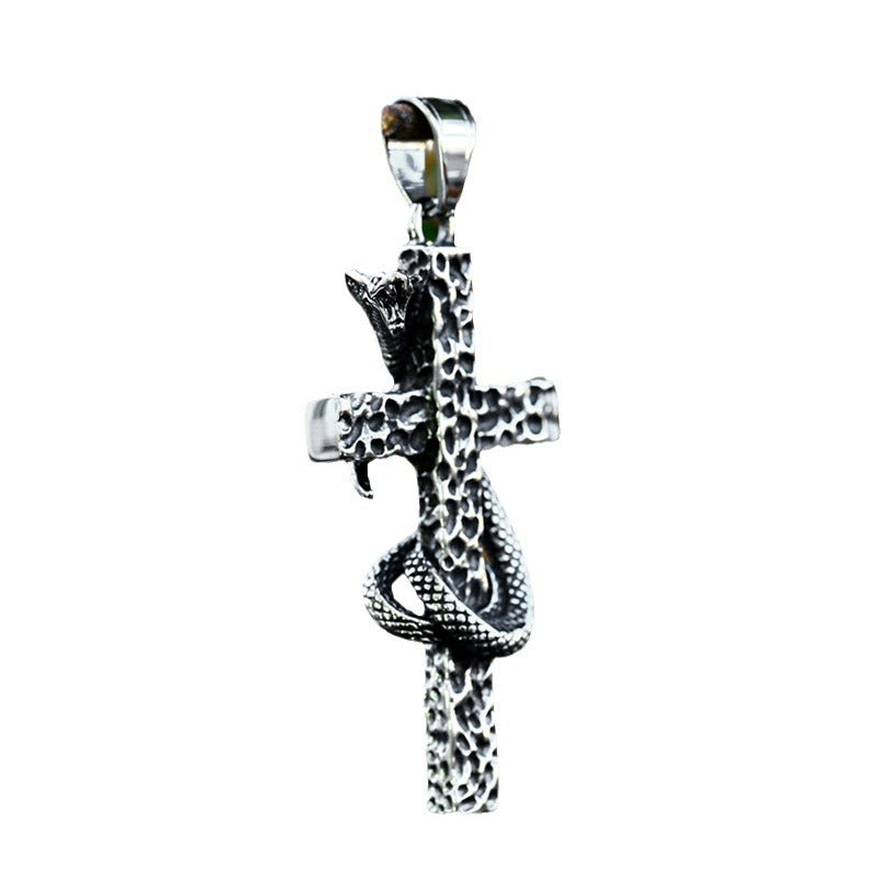Vintage Nordic Titanium Steel Cross Snake Pendant for Men - Wholesale Stainless Steel Python Jewelry