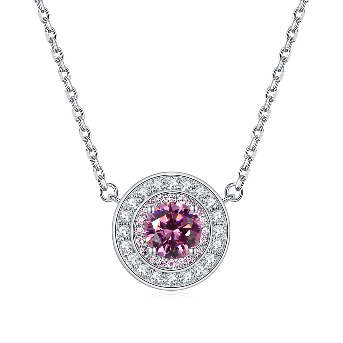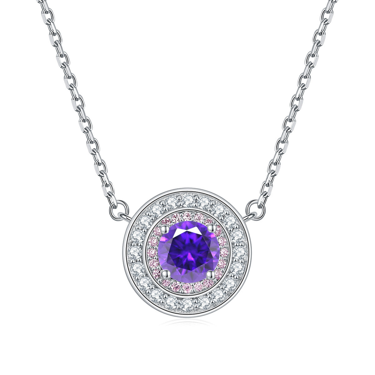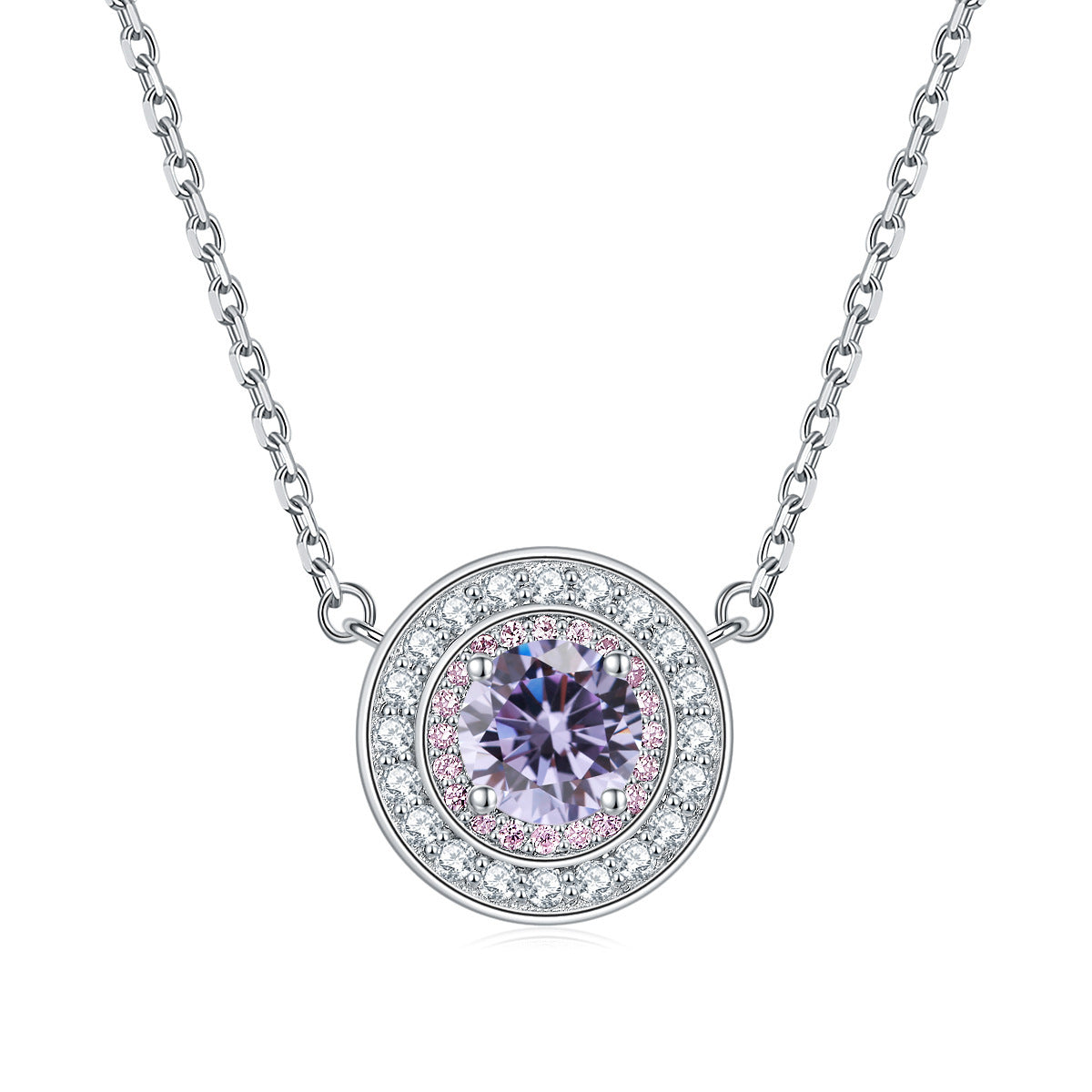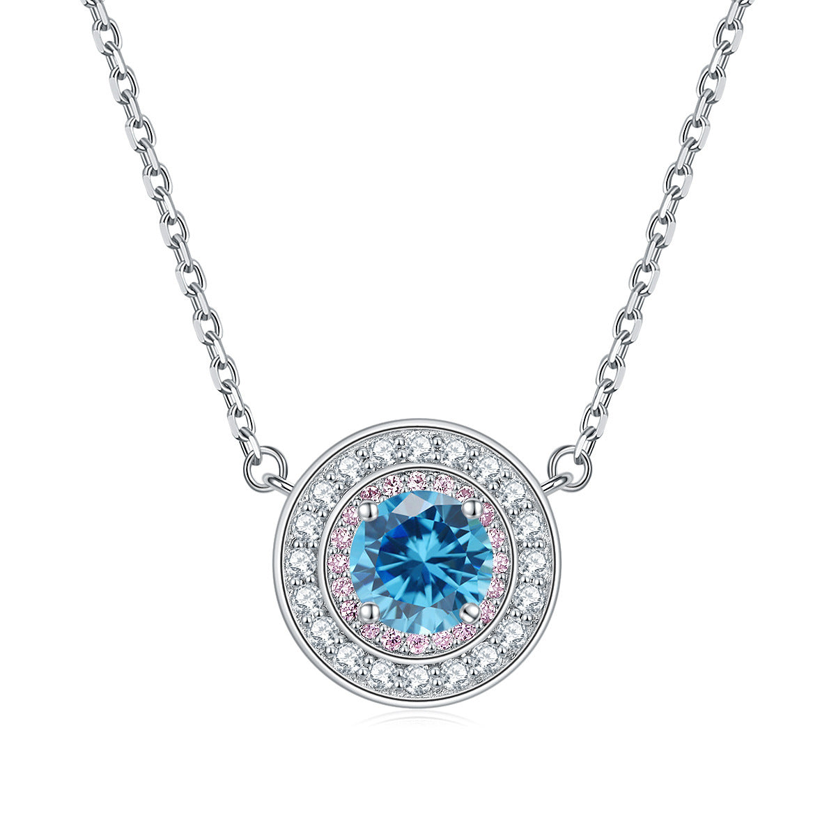 Colourful Round Zircon Soleste Halo Pendant Silver Necklace for Women