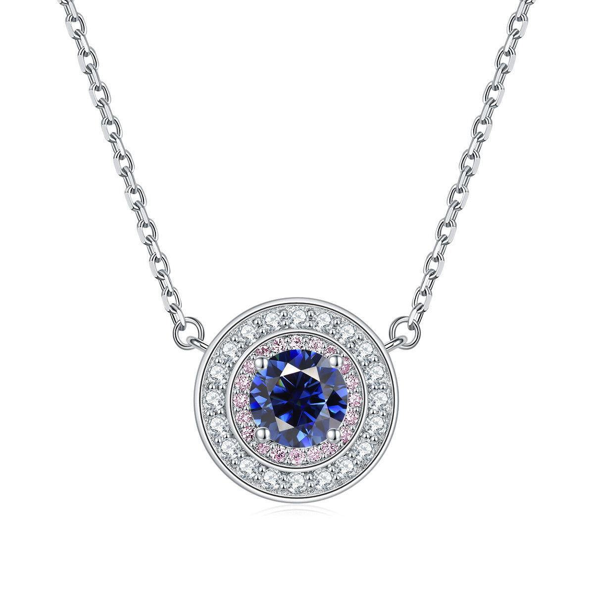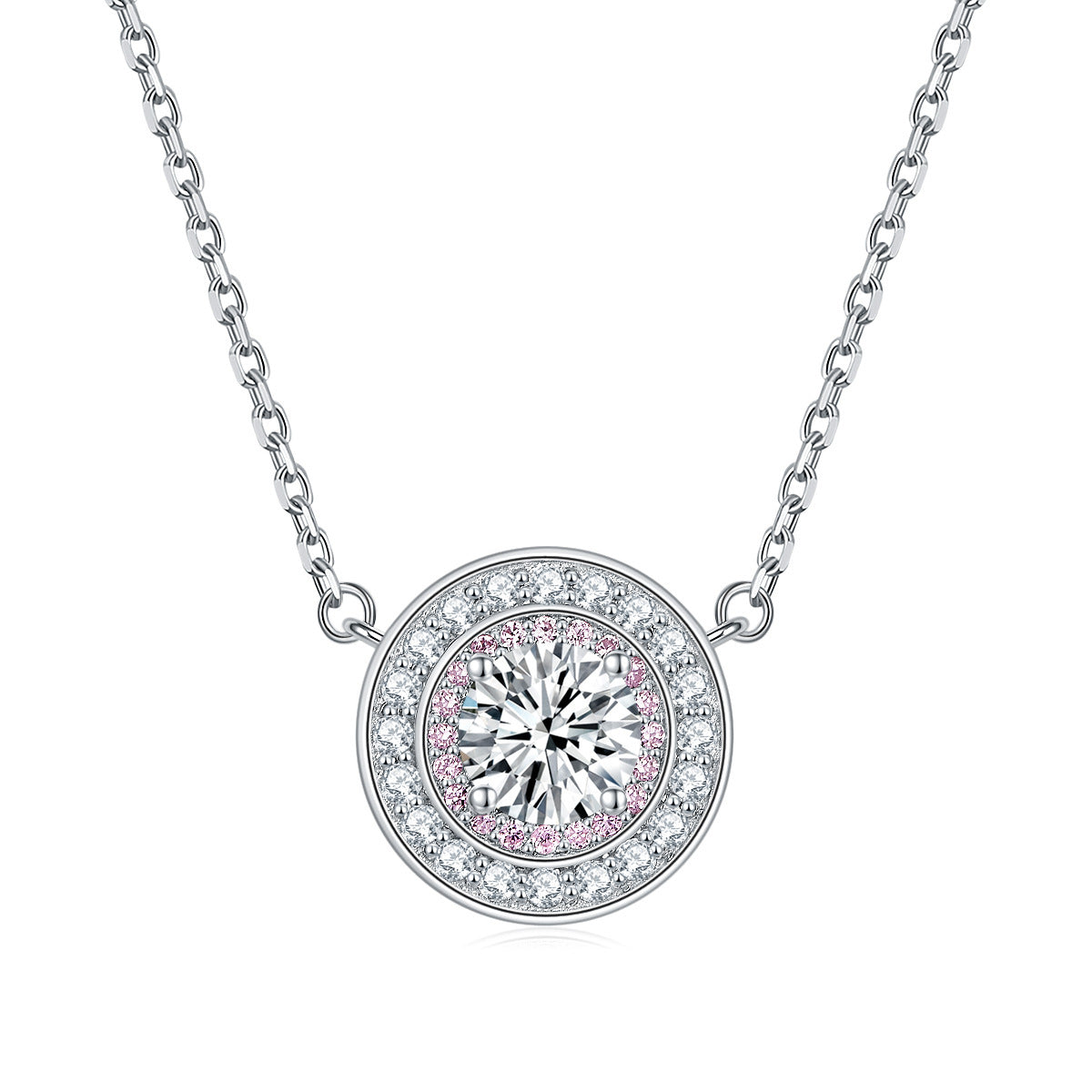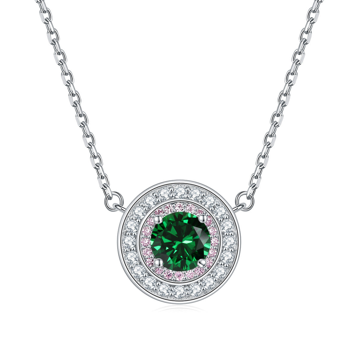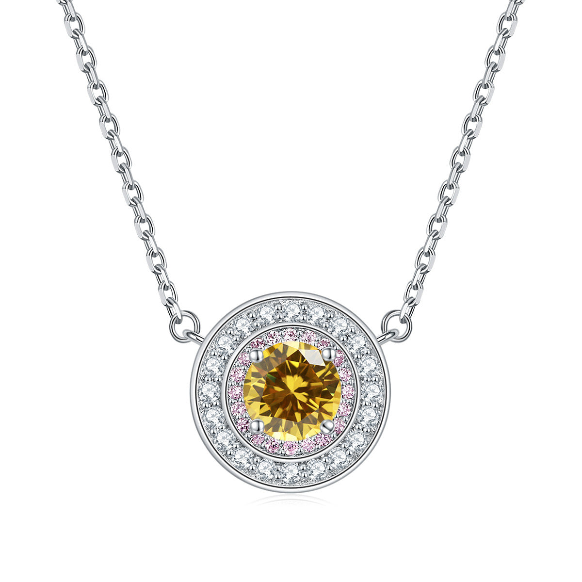 Colourful Round Zircon Soleste Halo Pendant Silver Necklace for Women