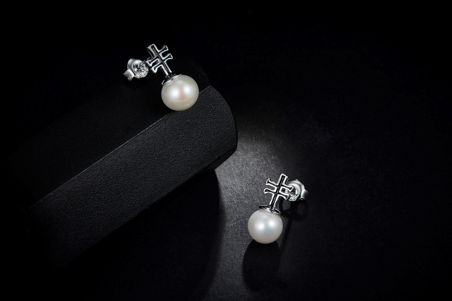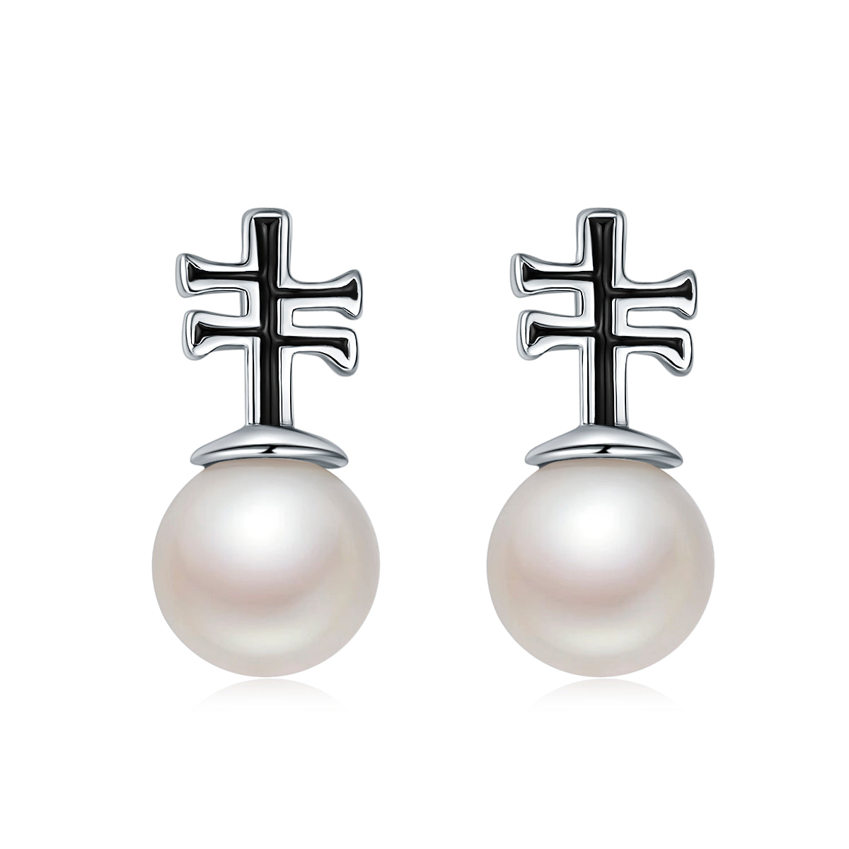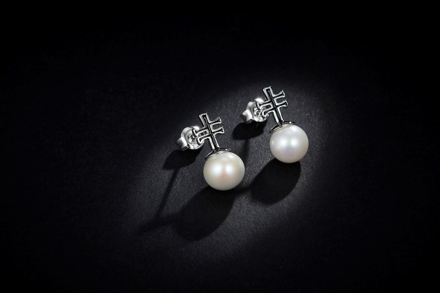 This earrings is a unique artwork inspired by the traditional instrument pipa, crafted with black enamel craftsmanship to create the strings and exquisite details of the pipa, showcasing the charm of music and art. The main body of the pipa is a round pearl, symbolizing purity and beauty, complementing the luster of pure silver, adding a touch of nobility and elegance to the appearance.