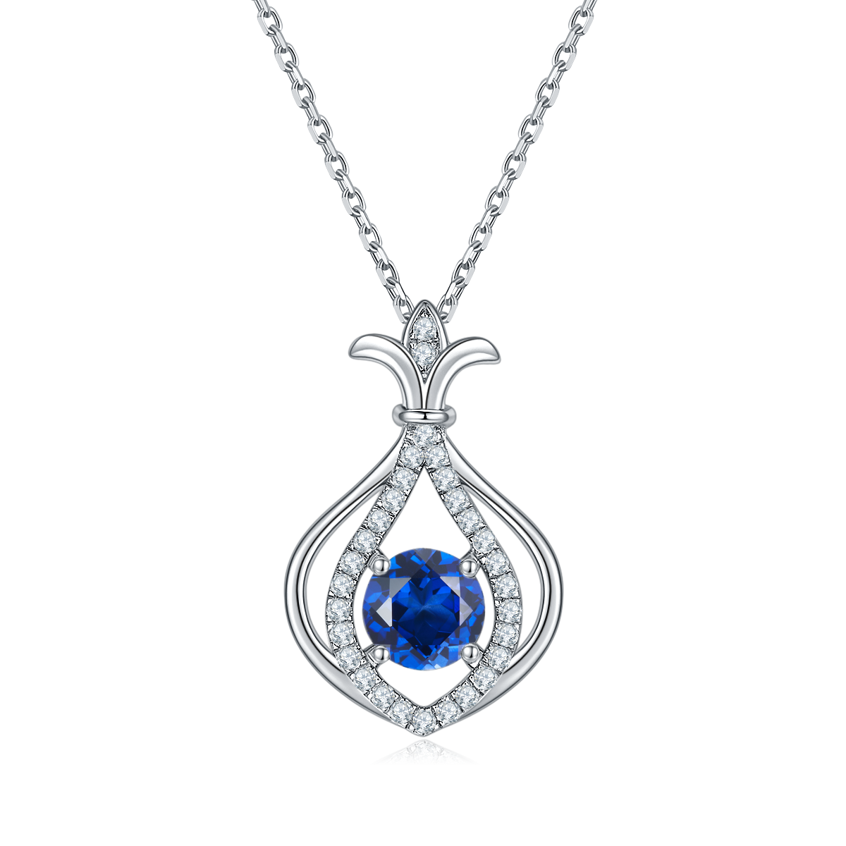 Adorn yourself with this exquisite Round Cut Blue Crystal Small Gourd Necklace . With a gleaming round blue crystal set in a unique small gourd, this sophisticated piece radiates timeless elegance. Let this chic necklace take your style to new heights of refinement and sophistication.