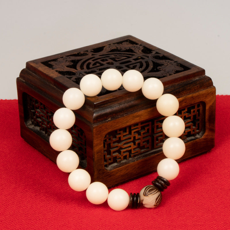 New Chinese Retro Lotus White Jade Bodhi Root Bracelet - Unisex Jewelry