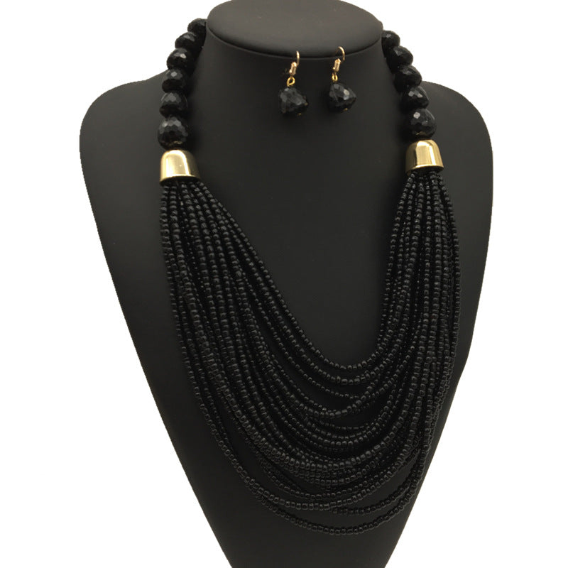 Extravagant Ethnic Style Multi-tiered Necklace Set with Resin Beads